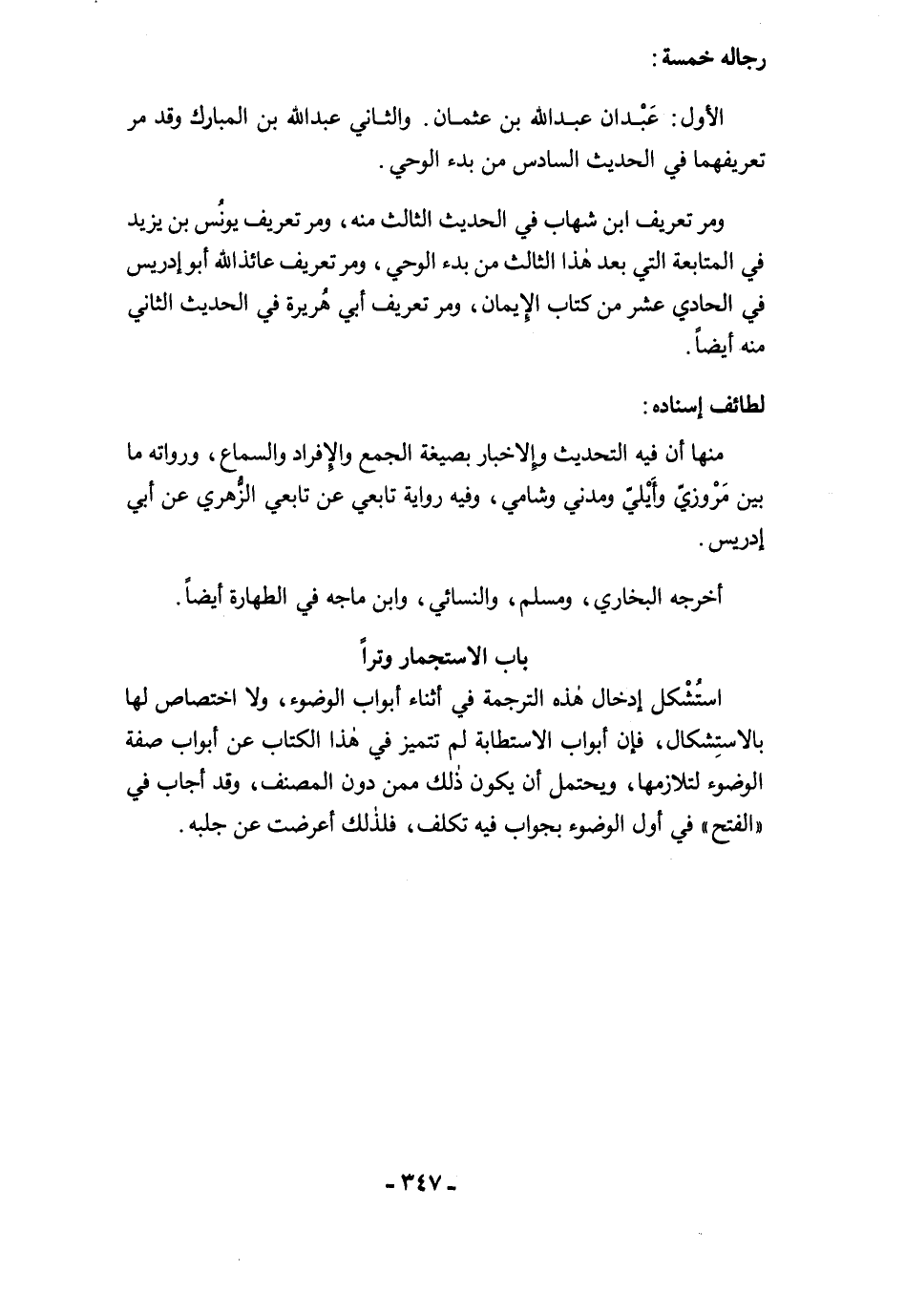 ومر تعريف ابن شهاب في الحديث الثالث منه، ومر تعريف يونُس بن يزيد في المتابعة التي بعد هذا الثالث من بدء الوحي، ومر تعريف عائذ الله أبو إدريس في الحادي عشر من كتاب الإيمان، ومر تعريف أبي هُريرة في الحديث الثاني منه أيضًا.