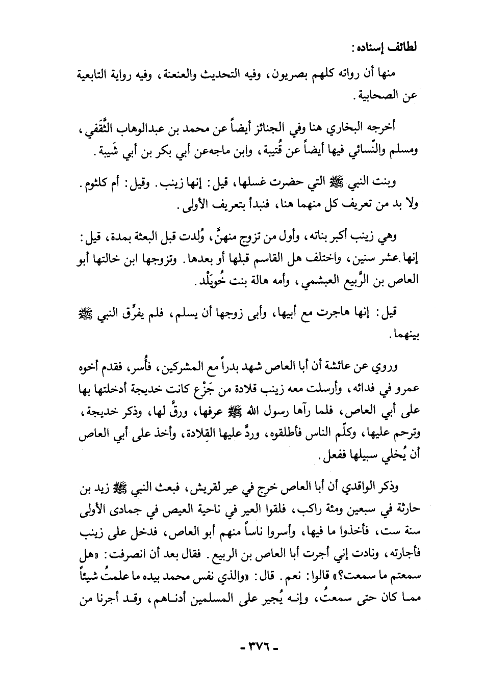منها أن رواته كلهم بصريون، وفيه التحديث والعنعنة، وفيه رواية التابعية عن الصحابية.