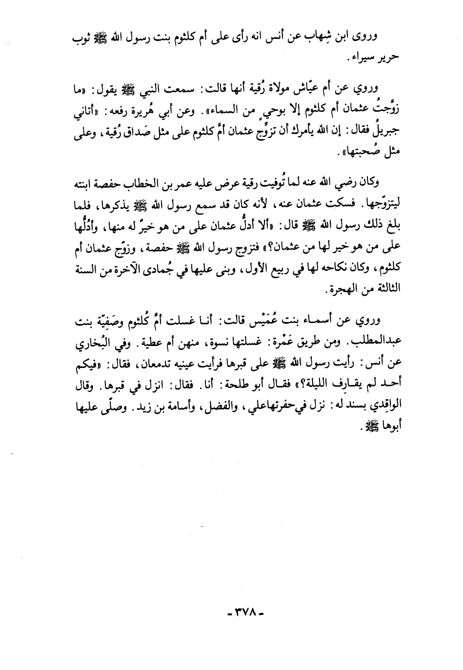 وروى ابن شِهاب عن أنس انه رأى على أم كلثوم بنت رسول الله -صلى الله عليه وسلم- ثوب حرير سيراء.