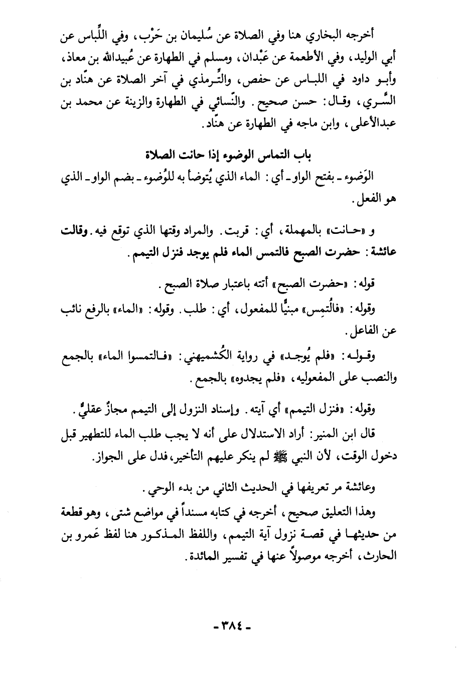وقوله: "فلم يُوجد" في رواية الكُشميهني: "فالتمسوا الماء" بالجمع والنصب على المفعوليه، "فلم يجدوه" بالجمع.