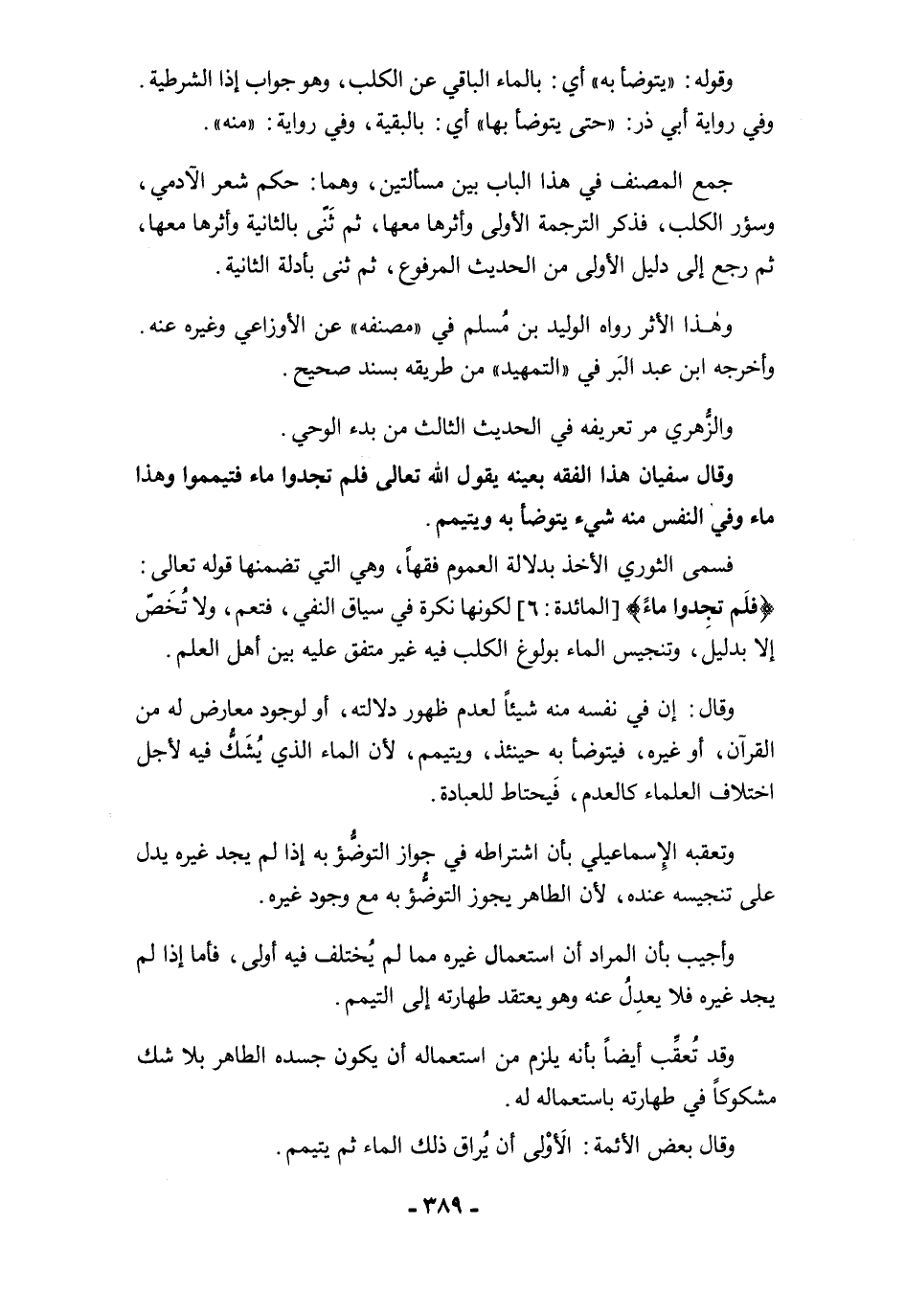 وقال: إن في نفسه منه شيئًا لعدم ظهور دلالته، أو لوجود معارض له من القرآن، أو غيره، فيتوضأ به حينئذ، ويتيمم؛ لأن الماء الذي يُشَكُّ فيه لأجل اختلاف العلماء كالعدم، فَيحتاط للعبادة.