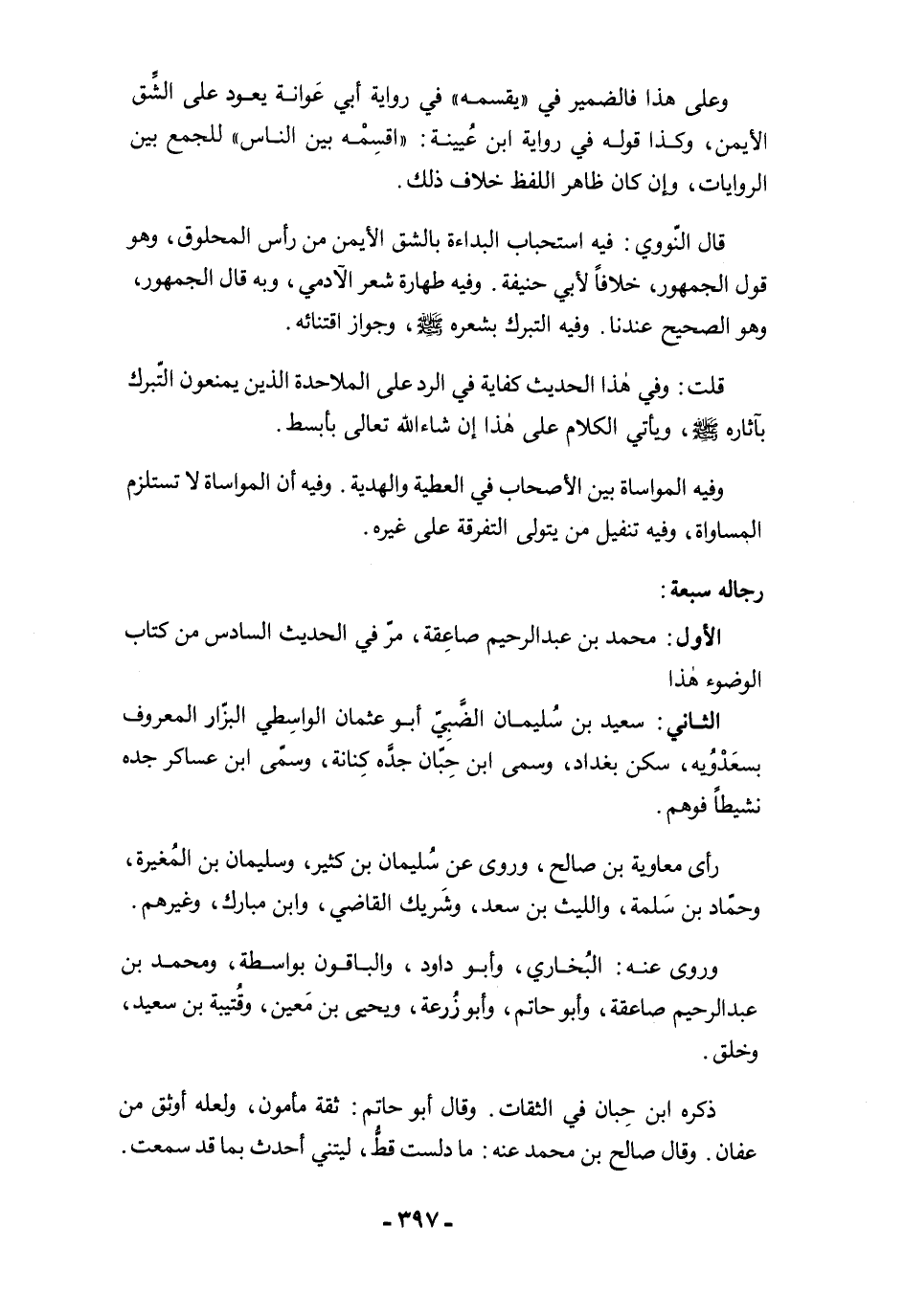 قلت: وفي هذا الحديث كفاية في الرد على الملاحدة الذين يمنعون التّبرك بآثاره -صلى الله عليه وسلم-، ويأتي الكلام على هذا إن شاء الله تعالى بأبسط.