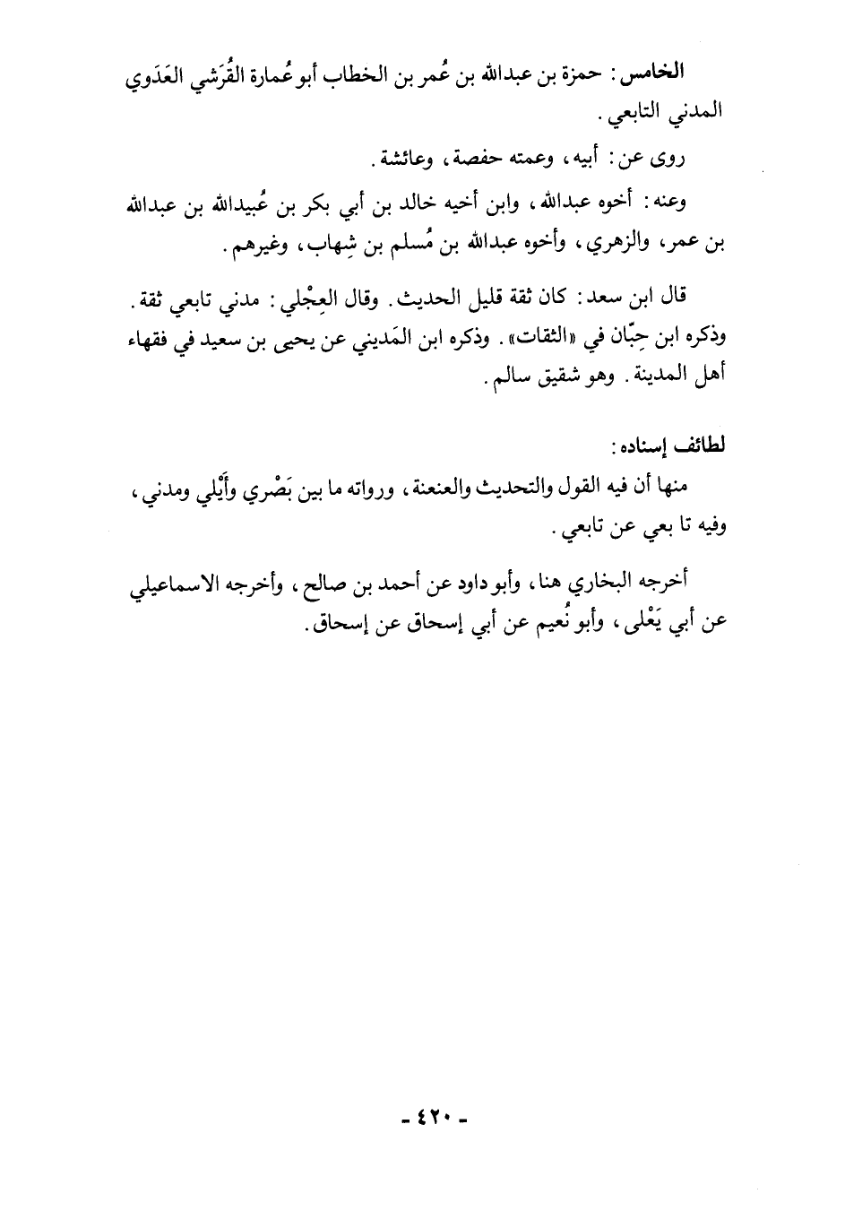 الخامس: حمزة بن عبد الله بن عُمر بن الخطاب أبو عُمارة القُرَشي العَدَوي المدني التابعي.