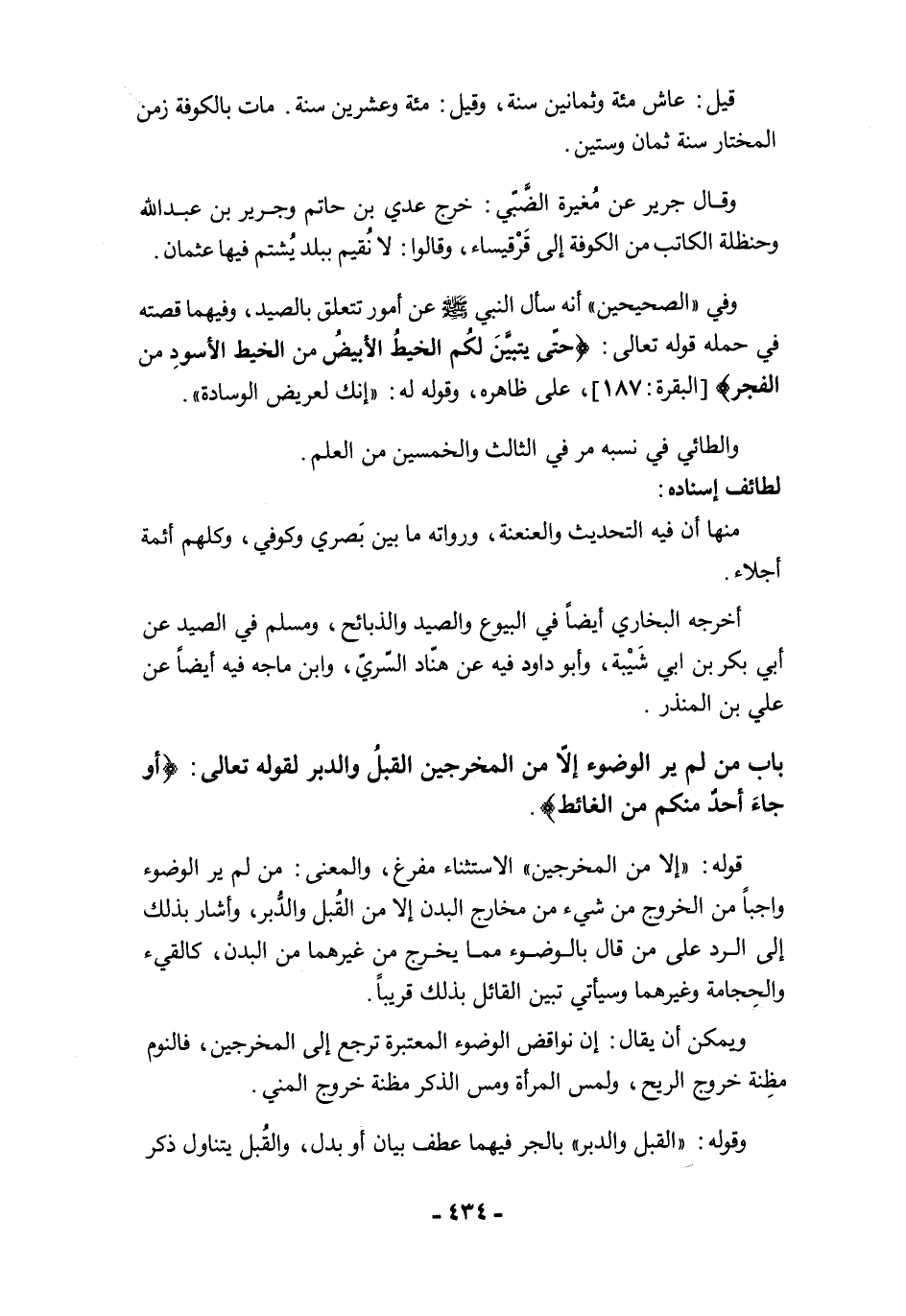 باب من لم ير الوضوء إلاّ من المخرجين القبلُ والدبر لقوله تعالى: {أَوْ جَاءَ أَحَدٌ مِنْكُمْ مِنَ الْغَائِطِ}.