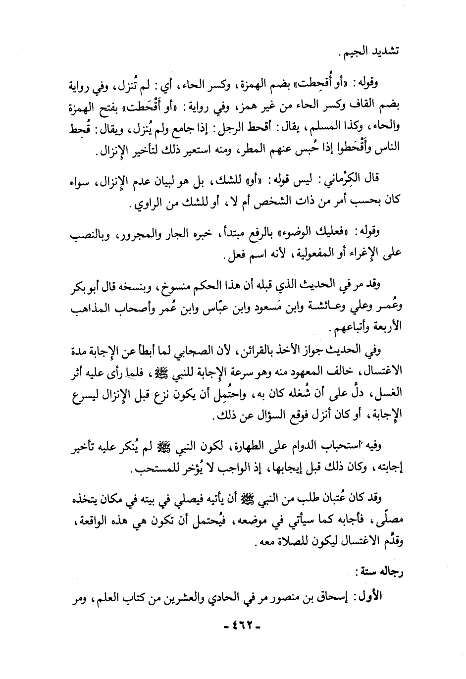 قال الكِرْماني: ليس قوله: "أو" للشك، بل هو لبيان عدم الإنزال، سواء كان بحسب أمر من ذات الشخص أم لا، أو للشك من الراوي.