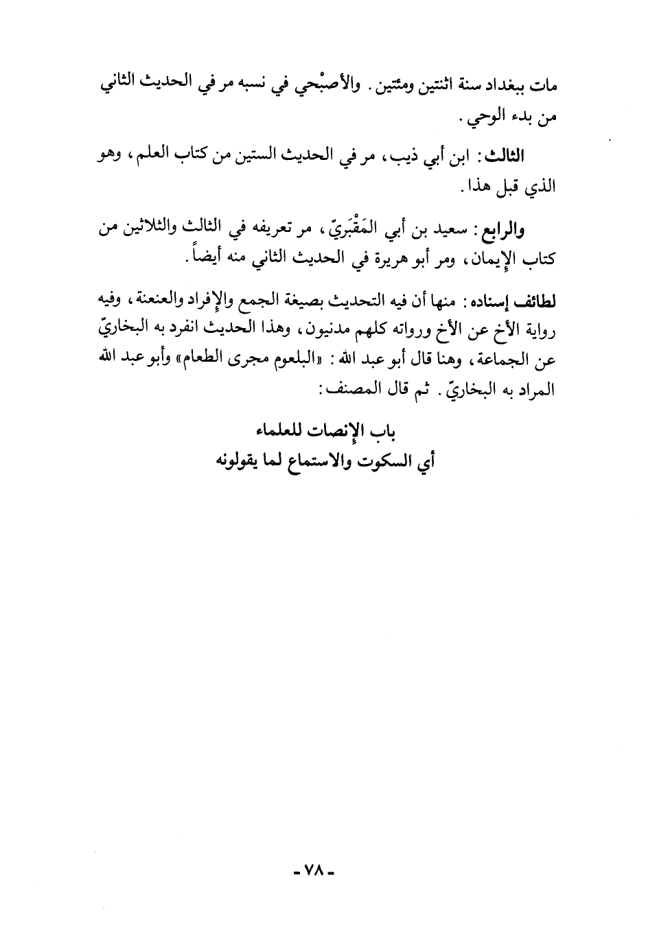 باب الإنصات للعلماء أي السكوت والاستماع لما يقولونه