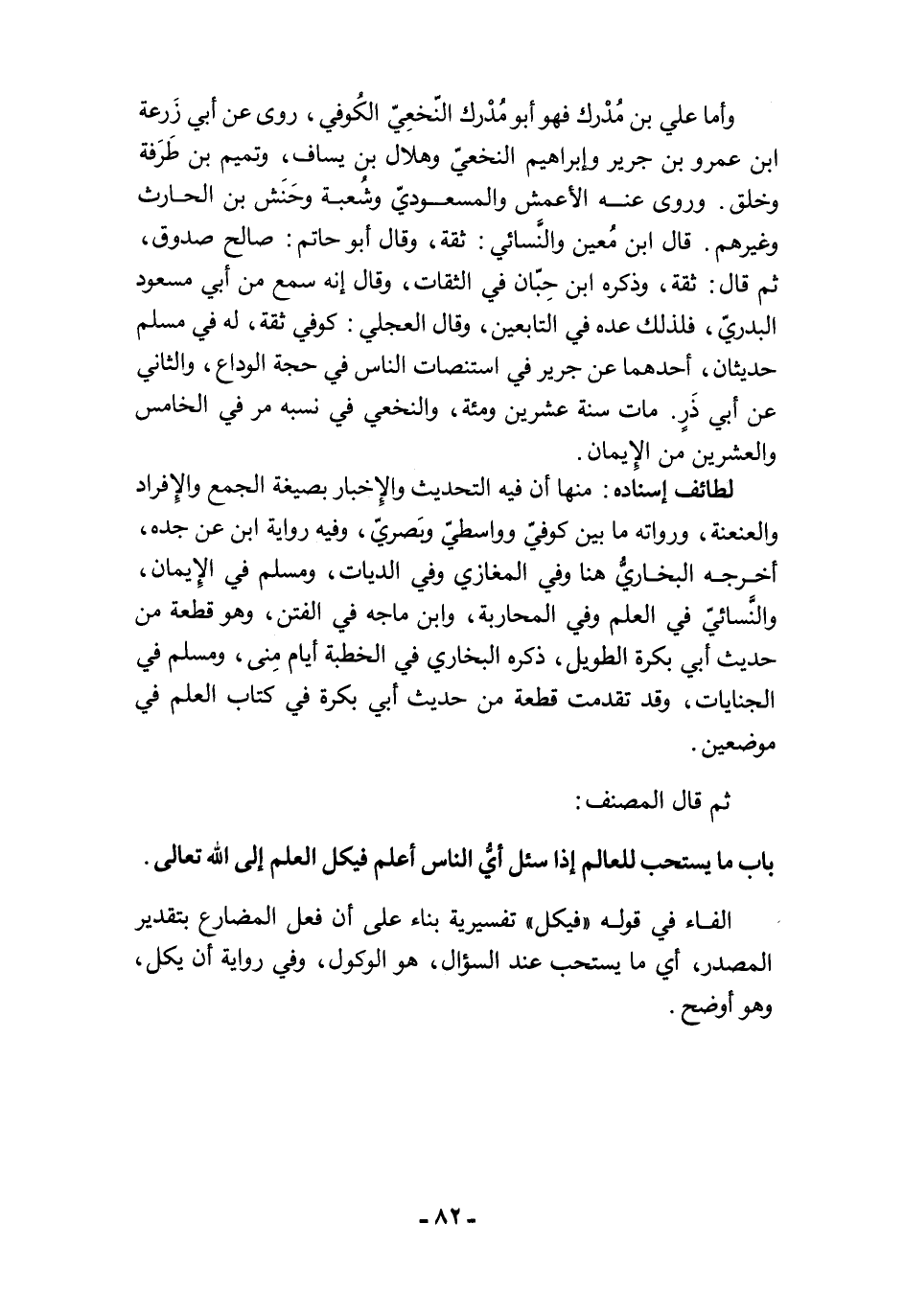 باب ما يستحب للعالم إذا سئل أيُّ الناس أعلم فيكل العلم إلى الله تعالى.