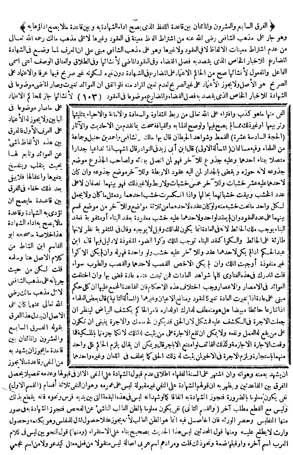 وَهُوَ جَارٍ عَلَى مَذْهَبِ الشَّافِعِيِّ - رَضِيَ اللَّهُ عَنْهُ - مِنْ اشْتِرَاطِ أَلْفَاظٍ مُعَيَّنَةٍ فِي الْعُقُودِ وَغَيْرِهَا لَا عَلَى مَذْهَبِ مَالِكٍ - رَحِمَهُ اللَّهُ تَعَالَى - مِنْ عَدَمِ اشْتِرَاطِ مُعَيَّنَاتِ الْأَلْفَاظِ لَا فِي الْعُقُودِ، وَلَا غَيْرِهَا، وَهُوَ عَلَى مَذْهَبِ الشَّافِعِيِّ مَبْنِيٌّ عَلَى أَنَّ الْعُرْفَ لَمَّا وَضَعَ فِي الشَّهَادَةِ الْمُضَارِعَ لِلْإِخْبَارِ الْخَاصِّ الَّذِي يُقْصَدُ بِهِ فَصْلُ الْقَضَاءِ وَفِي الْعُقُودِ الْمَاضِي لِإِنْشَائِهَا وَفِي الطَّلَاقِ وَالْعَتَاقِ الْوَصْفَ أَعْنِي اسْمَيْ الْفَاعِلِ وَالْمَفْعُولِ لِإِنْشَائِهَا صَحَّ مِنْ الْحَاكِمِ الِاعْتِمَادُ عَلَى الْمُضَارِعِ فِي الشَّهَادَةِ دُونَ غَيْرِهِ لِكَوْنِهِ غَيْرِ صَرِيحٍ فِيهَا عُرْفًا، وَالِاعْتِمَادُ عَلَى الصَّرِيحِ هُوَ الْأَصْلُ، وَلَا يَجُوزُ الِاعْتِمَادُ عَلَى غَيْرِ الصَّرِيحِ لِعَدَمِ تَعَيُّنِ الْمُرَادِ مِنْهُ فَلَوْ اتَّفَقَ أَنَّ الْعَوَائِدَ تَغَيَّرَتْ، وَصَارَ الْمَاضِي مَوْضُوعًا فِي الشَّهَادَةِ لِلْإِخْبَارِ الْخَاصِّ الَّذِي يَقْصَدُ بِهِ فَصْلَ الْقَضَاءِ، وَالْمُضَارِعُ مَوْضُوعًا فِي الْعُقُودِ لِإِنْشَائِهَا جَازَ لِلْحَاكِمِ الِاعْتِمَادُ عَلَى مَا صَارَ مَوْضُوعًا فِي الْبَابَيْنِ، وَلَا يَجُوزُ لَهُ الِاعْتِمَادُ عَلَى الْعُرْفِ الْأَوَّلِ فَالْفَرْقُ بَيْنَ هَذِهِ الْأَلْفَاظِ نَاشِئٌ عَنْ الْعَوَائِدِ، وَتَابِعٌ لَهَا بِحَيْثُ يَنْقَلِبُ، وَيَنْفَسِخُ بِتَغَيُّرِهَا وَانْتِقَالِهَا فَلَا يَبْقَى بَعْدَ ذَلِكَ خَفَاءٌ فِي الْفَرْقِ بَيْنَ قَاعِدَةِ مَا يَصِحُّ أَنْ تُؤَدَّى بِهِ الشَّهَادَةُ وَقَاعِدَةِ مَا لَا يَصِحُّ بِهِ أَدَاءُ الشَّهَادَةِ هَذَا خُلَاصَةُ مَا صَحَّحَهُ أَبُو الْقَاسِمِ بْنُ الشَّاطِّ مِنْ كَلَامِ الْأَصْلِ هُنَا، وَسَلَّمَهُ قُلْت لَكِنْ مِنْ حَيْثُ جَرَيَانُهُ عَلَى مَذْهَبِ الشَّافِعِيِّ لَا عَلَى مَذْهَبِ مَالِكٍ - رَضِيَ اللَّهُ تَعَالَى عَنْهُمَا - كَانَ عَلَى الْأَصْلِ أَنْ يُبَدَّلَ هَذَا الْفَرْقُ بِقَوْلِهِ الْفَرْقُ السَّابِعُ وَالْعِشْرُونَ وَالْمِائَتَانِ بَيْنَ قَاعِدَةِ مَا يَجُوزُ أَنْ يَشْهَدَ بِهِ مِنْ النَّفْيِ وَقَاعِدَةِ مَا لَا يَجُوزُ أَنْ يَشْهَدَ بِهِ مِنْهُ وَهُوَ أَنَّهُ وَإِنْ اشْتَهَرَ عَلَى أَلْسِنَةِ الْفُقَهَاءِ إطْلَاقُ عَدَمِ قَبُولِ الشَّهَادَةِ عَلَى النَّفْيِ إلَّا أَنَّ فِي قَبُولِهَا، وَعَدَمِهِ تَفْصِيلًا يَحْصُلُ الْفَرْقُ بَيْنَ الْقَاعِدَتَيْنِ، وَيَظْهَرُ بِهِ أَنَّ قَوْلَهُمْ الشَّهَادَةُ عَلَى النَّفْيِ غَيْرُ مَقْبُولَةٍ لَيْسَ عَلَى عُمُومِهِ، وَهُوَ أَنَّ النَّفْيَ ثَلَاثَةُ أَقْسَامٍ: