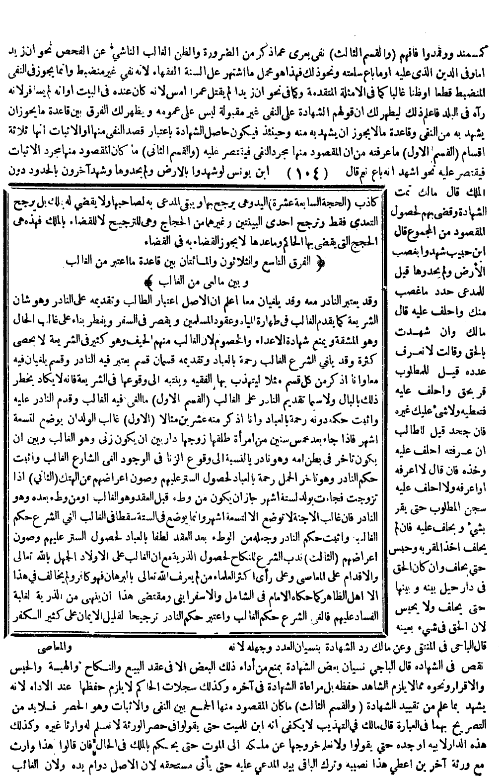 وَقَدْ يُعْتَبَرُ النَّادِرُ مَعَهُ، وَقَدْ يُلْغَيَانِ مَعًا اعْلَمْ أَنَّ الْأَصْلَ اعْتِبَارُ الْغَالِبِ، وَتَقْدِيمُهُ عَلَى النَّادِرِ، وَهُوَ شَأْنُ الشَّرِيعَةِ كَمَا يُقَدَّمُ الْغَالِبُ فِي طَهَارَةِ الْمِيَاهِ وَعُقُودِ الْمُسْلِمِينَ، وَيَقْصِرُ فِي السَّفَرِ، وَيُفْطِرُ بِنَاءً عَلَى غَالِبِ الْحَالِ، وَهُوَ الْمَشَقَّةُ، وَيَمْنَعُ شَهَادَةَ الْأَعْدَاءِ وَالْخُصُومِ لِأَنَّ الْغَالِبَ مِنْهُمْ الْحَيْفُ، وَهُوَ كَثِيرٌ فِي الشَّرِيعَةِ لَا يُحْصَى كَثْرَةً، وَقَدْ يُلْغِي الشَّرْعُ الْغَالِبَ رَحْمَةً بِالْعِبَادِ، وَتَقْدِيمُهُ قِسْمَانِ قِسْمٌ يُعْتَبَرُ فِيهِ النَّادِرُ، وَقِسْمٌ يُلْغَيَانِ فِيهِ مَعًا.