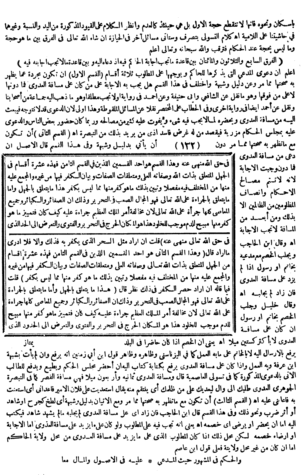 فِي حَقِّ اللَّهِ مَنْهِيٌّ عَنْهُ وَهَذَا الْقِسْمُ هُوَ أَحَدُ الْقِسْمَيْنِ اللَّذَيْنِ فِي الْقِسْمِ الثَّامِنِ فَهَذِهِ عَشَرَةُ أَقْسَامٍ فِي الْجَهْلِ الْمُتَعَلِّقِ بِذَاتِ اللَّهِ وَصِفَاتِهِ الْعُلَى، وَمُتَعَلَّقَاتِ الصِّفَاتِ وَبَيَانِ الْكُفْرِ فِيهَا مِنْ غَيْرِهِ وَالْمُجْمَعِ عَلَيْهِ مِنْهَا مِنْ الْمُخْتَلَفِ فِيهِ مُفَصَّلًا، وَتَبَيَّنَ بِذَلِكَ مَا هُوَ كُفْرٌ مِنْهَا مِمَّا لَيْسَ بِكُفْرٍ، هَذَا مَا يَتَعَلَّقُ بِالْجَهْلِ، وَأَمَّا مَا يَتَعَلَّقُ بِالْجَرَاءَةِ عَلَى اللَّهِ تَعَالَى فَهُوَ الْمَجَالُ الصَّعْبُ فِي التَّحْرِيرِ وَذَلِكَ أَنَّ الصَّغَائِرَ وَالْكَبَائِرَ وَجَمِيعَ الْمَعَاصِي كُلَّهَا جُرْأَةٌ عَلَى اللَّهِ تَعَالَى؛ لِأَنَّ مُخَالَفَةَ أَمْرِ الْمَلِكِ الْعَظِيمِ جَرَاءَةٌ عَلَيْهِ كَيْفَ كَانَ فَتَمْيِيزُ مَا هُوَ كُفْرٌ مِنْهَا مُبِيحٌ لِلدَّمِ مُوجِبٌ لِلْخُلُودِ هَذَا هُوَ الْمَكَانُ الْحَرِجُ فِي التَّحْرِيرِ وَالْفَتْوَى، وَالتَّعَرُّضُ إلَى الْحَدِّ الَّذِي