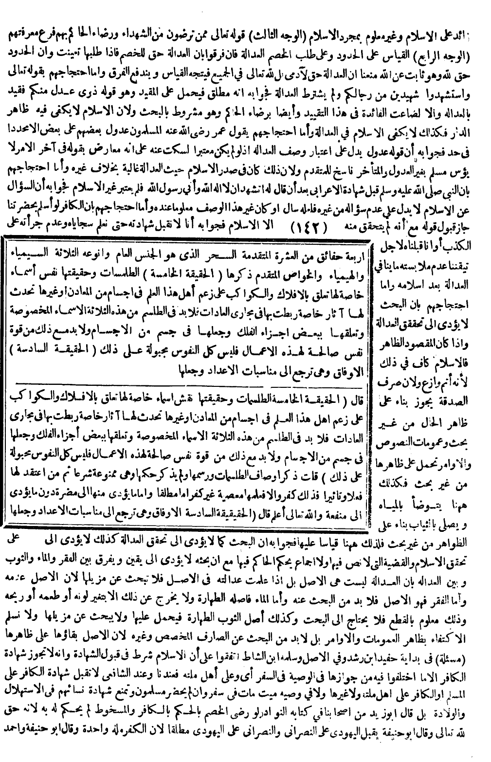 قُلْتُ ذَكَرَ أَوْصَافَ الطَّلْسَمَاتِ وَرَسْمَهَا، وَلَمْ يَذْكُرْ حُكْمَهَا وَهِيَ مَمْنُوعَةٌ شَرْعًا ثُمَّ مَنْ اعْتَقَدَ لَهَا فِعْلًا وَتَأْثِيرًا فَذَلِكَ كُفْرٌ، وَإِلَّا فَعِلْمُهَا مَعْصِيَةٌ غَيْرُ كُفْرٍ إمَّا مُطْلَقًا، وَإِمَّا مَا يُؤَدِّي مِنْهَا إلَى مَضَرَّةٍ دُونَ مَا يُؤَدِّي إلَى مَنْفَعَةٍ، وَاَللَّهُ تَعَالَى أَعْلَمُ. قَالَ: (الْحَقِيقَةُ السَّادِسَةُ الْأَوْفَاقُ وَهِيَ تَرْجِعُ إلَى مُنَاسَبَاتِ الْأَعْدَادِ وَجَعْلِهَا