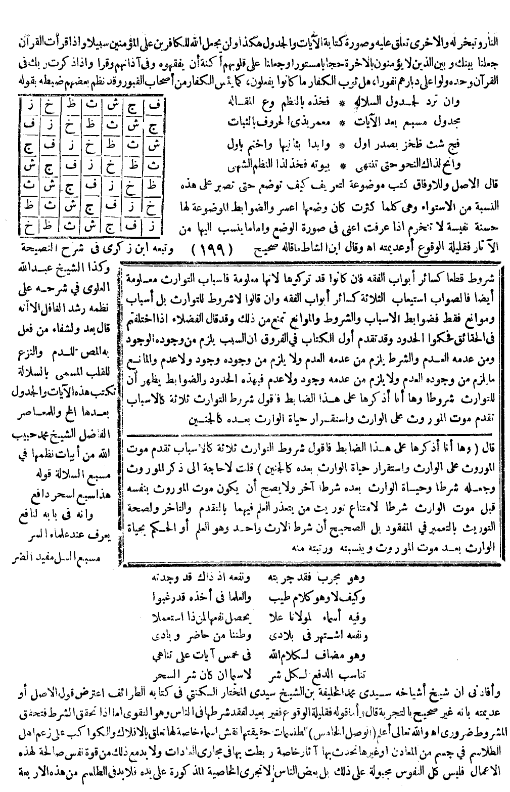 وَقَالَ ابْنُ الشَّاطِّ مَا قَالَهُ صَحِيحٌ وَتَبِعَهُ ابْنُ زِكْرِيٍّ فِي شَرْحِ النَّصِيحَةِ وَكَذَا الشَّيْخُ عَبْدُ اللَّهِ الْعَلَوِيُّ فِي شَرْحِهِ عَلَى نَظْمِهِ رُشْدِ الْغَافِلِ إلَّا أَنَّهُ قَالَ بَعْدُ وَلِشِفَاءِ مَنْ فُعِلَ بِهِ الْمَصُّ لِلدَّمِ وَالنَّزْعُ لِلْقَلْبِ الْمُسَمَّى بِالسَّلَّالَةِ تُكْتَبُ هَذِهِ الْآيَاتُ وَالْجَدْوَلُ بَعْدَهَا إلَخْ وَلِلْمُعَاصِرِ الْفَاضِلِ الشَّيْخِ مُحَمَّدٍ حَبِيبِ اللَّهِ مِنْ أَبْيَاتٍ نَظَمَهَا فِي مُسَبَّعِ السَّلَّالَةِ قَوْلُهُ: