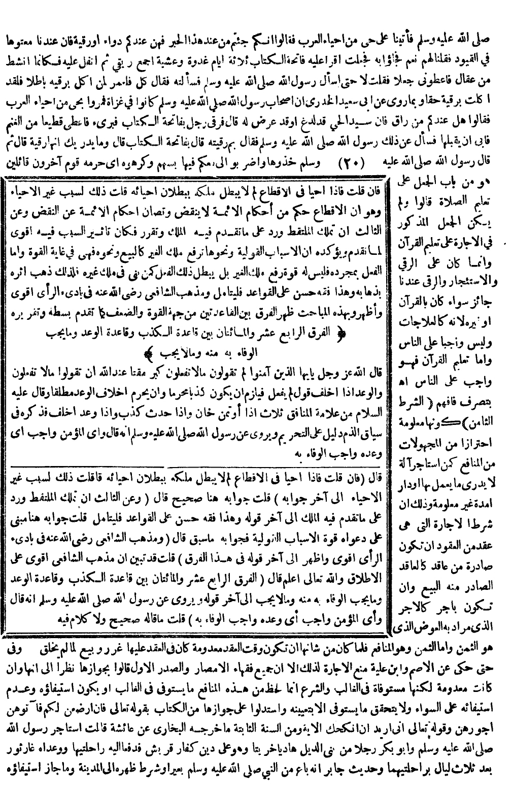 ـــــــــــــــــــــــــــــQ- صَلَّى اللَّهُ عَلَيْهِ وَسَلَّمَ - فَأَتَيْنَا عَلَى حَيٍّ مِنْ أَحْيَاءِ الْعَرَبِ فَقَالُوا إنَّكُمْ جِئْتُمْ مِنْ عِنْدِ هَذَا الْحَبْرِ فَهَلْ عِنْدَكُمْ دَوَاءٌ أَوْ رُقْيَةٌ فَإِنَّ عِنْدَنَا مَعْتُوهًا فِي الْقُيُودِ فَقُلْنَا لَهُمْ نَعَمْ فَجَاءُوا بِهِ فَجَعَلْت أَقْرَأُ عَلَيْهِ فَاتِحَةَ الْكِتَابِ ثَلَاثَةَ أَيَّامٍ غُدْوَةً وَعَشِيَّةً أَجْمَعُ بُزَاقِي ثُمَّ أَتْفُلُ عَلَيْهِ فَكَأَنَّمَا نَشِطَ مِنْ عِقَالٍ فَأَعْطَوْنِي جُعَلًا فَقُلْت: لَا حَتَّى أَسْأَلَ رَسُولَ اللَّهِ - صَلَّى اللَّهُ عَلَيْهِ وَسَلَّمَ - فَسَأَلْته فَقَالَ كُلْ لَعَمْرِي مَنْ أَكَلَ بِرُقْيَةِ بَاطِلٍ فَلَقَدْ أَكَلْت بِرُقْيَةِ حَقٍّ» ، وَبِمَا رُوِيَ عَنْ أَبِي سَعِيدٍ الْخُدْرِيِّ «أَنَّ أَصْحَابَ رَسُولِ اللَّهِ - صَلَّى اللَّهُ عَلَيْهِ وَسَلَّمَ - كَانُوا فِي غَزَاةٍ فَمَرُّوا بِحَيٍّ مِنْ أَحْيَاءِ الْعَرَبِ فَقَالُوا هَلْ عِنْدَكُمْ مِنْ رَاقٍ فَإِنَّ سَيِّدَ الْحَيِّ قَدْ لُدِغَ أَوْ قَدْ عَرَضَ لَهُ قَالَ فَرَقَى رَجُلٌ بِفَاتِحَةِ الْكِتَابِ فَبَرِئَ فَأُعْطِيَ قَطِيعًا مِنْ الْغَنَمِ فَأَبَى أَنْ يَقْبَلَهَا فَسَأَلَ عَنْ ذَلِكَ رَسُولَ اللَّهِ - صَلَّى اللَّهُ عَلَيْهِ وَسَلَّمَ - فَقَالَ بِمَ رَقَيْته قَالَ بِفَاتِحَةِ الْكِتَابِ قَالَ وَمَا يُدْرِيك أَنَّهَا رُقْيَةٌ قَالَ ثُمَّ قَالَ رَسُولُ اللَّهِ - صَلَّى اللَّهُ عَلَيْهِ وَسَلَّمَ - خُذُوهَا وَاضْرِبُوا لِي مَعَكُمْ فِيهَا بِسَهْمٍ» . وَكَرِهُوهُ أَيْ حَرَّمَهُ قَوْمٌ آخَرُونَ قَائِلِينَ هُوَ مِنْ بَابِ الْجُعْلِ عَلَى تَعْلِيمِ الصَّلَاةِ قَالُوا وَلَمْ يَكُنْ الْجُعْلُ الْمَذْكُورُ فِي الْإِجَارَةِ عَلَى تَعْلِيمِ الْقُرْآنِ، وَإِنَّمَا كَانَ عَلَى الرَّقْيِ وَالِاسْتِئْجَارِ، وَالرَّقْيُ عِنْدَنَا جَائِزٌ سَوَاءٌ كَانَ بِالْقُرْآنِ أَوْ غَيْرِهِ لِأَنَّهُ كَالْعِلَاجَاتِ، وَلَيْسَ وَاجِبًا عَلَى النَّاسِ، وَأَمَّا تَعْلِيمُ الْقُرْآنِ فَهُوَ وَاجِبٌ عَلَى النَّاسِ اهـ بِتَصَرُّفٍ فَافْهَمْ.
