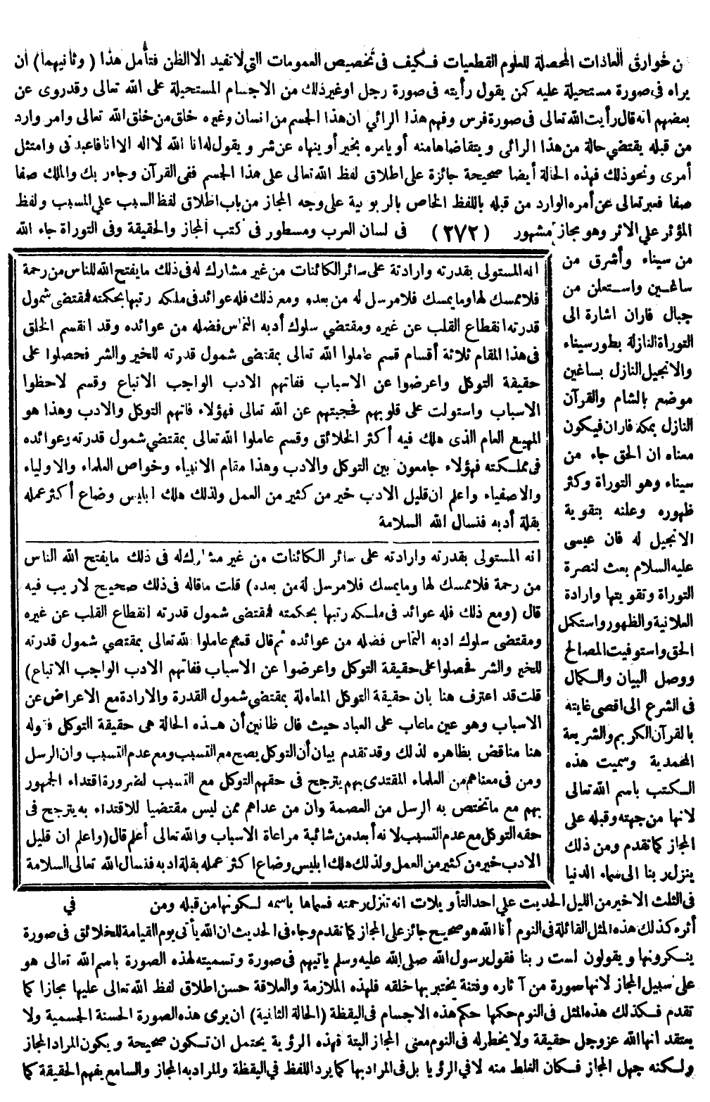 ـــــــــــــــــــــــــــــSأَنَّهُ الْمُسْتَوْلِي بِقُدْرَتِهِ وَإِرَادَتِهِ عَلَى سَائِرِ الْكَائِنَاتِ مِنْ غَيْرِ مُشَارِكٍ لَهُ فِي ذَلِكَ {مَا يَفْتَحِ اللَّهُ لِلنَّاسِ مِنْ رَحْمَةٍ فَلا مُمْسِكَ لَهَا وَمَا يُمْسِكْ فَلا مُرْسِلَ لَهُ مِنْ بَعْدِهِ} [فاطر: 2] قُلْت مَا قَالَهُ فِي ذَلِكَ صَحِيحٌ لَا رَيْبَ فِيهِ. قَالَ (وَمَعَ ذَلِكَ فَلَهُ عَوَائِدُ فِي مُلْكِهِ رَتَّبَهَا بِحِكْمَتِهِ فَمُقْتَضَى شُمُولِ قُدْرَتِهِ انْقِطَاعُ الْقَلْبِ عَنْ غَيْرِهِ وَمُقْتَضَى سُلُوكِ أَدَبِهِ الْتِمَاسُ فَضْلِهِ مِنْ عَوَائِدِهِ، ثُمَّ قَالَ قِسْمٌ عَامَلُوا اللَّهَ تَعَالَى بِمُقْتَضَى شُمُولِ قُدْرَتِهِ لِلْخَيْرِ وَالشَّرِّ فَحَصَلُوا عَلَى حَقِيقَةِ التَّوَكُّلِ وَأَعْرَضُوا عَنْ الْأَسْبَابِ فَفَاتَهُمْ الْأَدَبُ الْوَاجِبُ الِاتِّبَاعِ) .