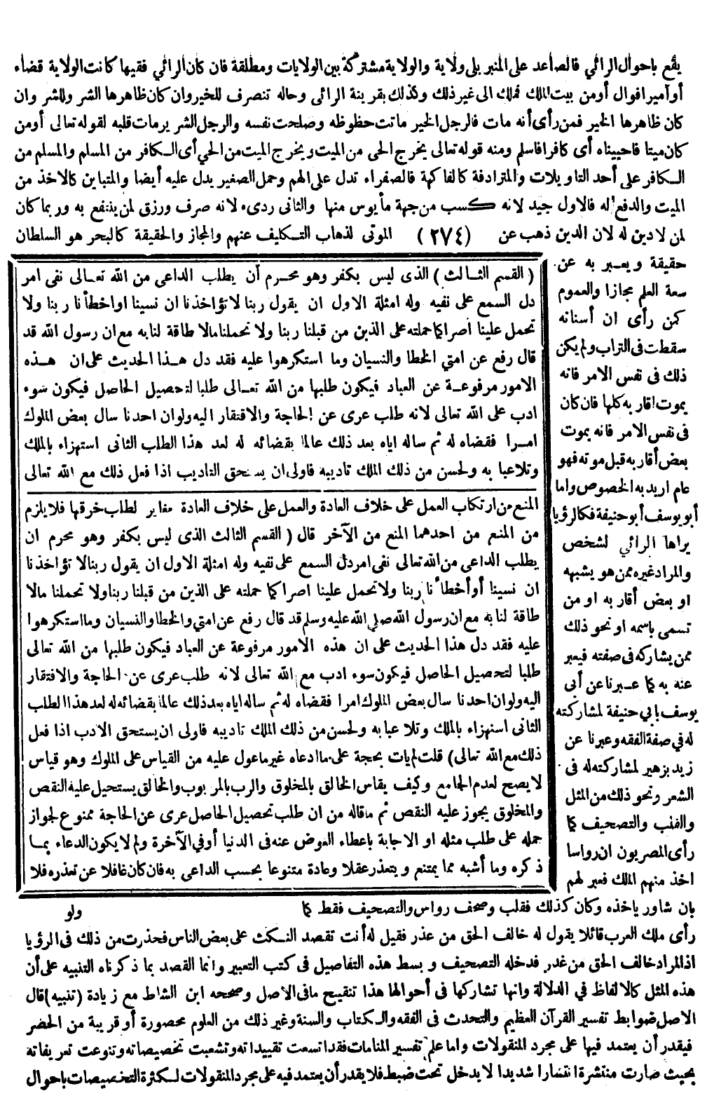 قَالَ (الْقِسْمُ الثَّالِثُ الَّذِي لَيْسَ بِكُفْرٍ وَهُوَ مُحَرَّمٌ أَنْ يَطْلُبَ الدَّاعِي مِنْ اللَّهِ تَعَالَى نَفْيَ أَمْرٍ دَلَّ السَّمْعُ عَلَى نَفْيِهِ وَلَهُ أَمْثِلَةٌ: الْأَوَّلُ أَنْ يَقُولَ رَبَّنَا لَا تُؤَاخِذْنَا إنْ نَسِينَا أَوْ أَخْطَأْنَا رَبَّنَا وَلَا تَحْمِلْ عَلَيْنَا إصْرًا كَمَا حَمَلْته عَلَى الَّذِينَ مِنْ قَبْلِنَا رَبّنَا وَلَا تُحَمِّلْنَا مَا لَا طَاقَةَ لَنَا بِهِ. مَعَ أَنَّ رَسُولَ اللَّهِ - صَلَّى اللَّهُ عَلَيْهِ وَسَلَّمَ - قَدْ قَالَ «رُفِعَ عَنْ أُمَّتِي الْخَطَأُ وَالنِّسْيَانُ، وَمَا اُسْتُكْرِهُوا عَلَيْهِ» فَقَدْ دَلَّ هَذَا الْحَدِيثُ عَلَى أَنَّ هَذِهِ الْأُمُورَ مَرْفُوعَةٌ عَنْ الْعِبَادِ فَيَكُونُ طَلَبُهَا مِنْ اللَّهِ تَعَالَى طَلَبًا لِتَحْصِيلِ الْحَاصِلِ فَيَكُونُ سُوءَ أَدَبٍ مَعَ اللَّهِ تَعَالَى لِأَنَّهُ طَلَبٌ عَرِيَ عَنْ الْحَاجَةِ وَالِافْتِقَارِ إلَيْهِ وَلَوْ أَنَّ أَحَدَنَا سَأَلَ بَعْضَ الْمُلُوكِ أَمْرًا فَقَضَاهُ لَهُ. ثُمَّ سَأَلَهُ إيَّاهُ بَعْدَ ذَلِكَ عَالِمًا بِقَضَائِهِ لَهُ لَعُدَّ هَذَا الطَّلَبُ الثَّانِي اسْتِهْزَاءً بِالْمَلِكِ وَتَلَاعُبًا بِهِ وَلَحَسُنَ مِنْ ذَلِكَ الْمَلِكِ تَأْدِيبُهُ فَأَوْلَى أَنْ يَسْتَحِقَّ الْأَدَبَ إذَا فَعَلَ ذَلِكَ مَعَ اللَّهِ تَعَالَى)