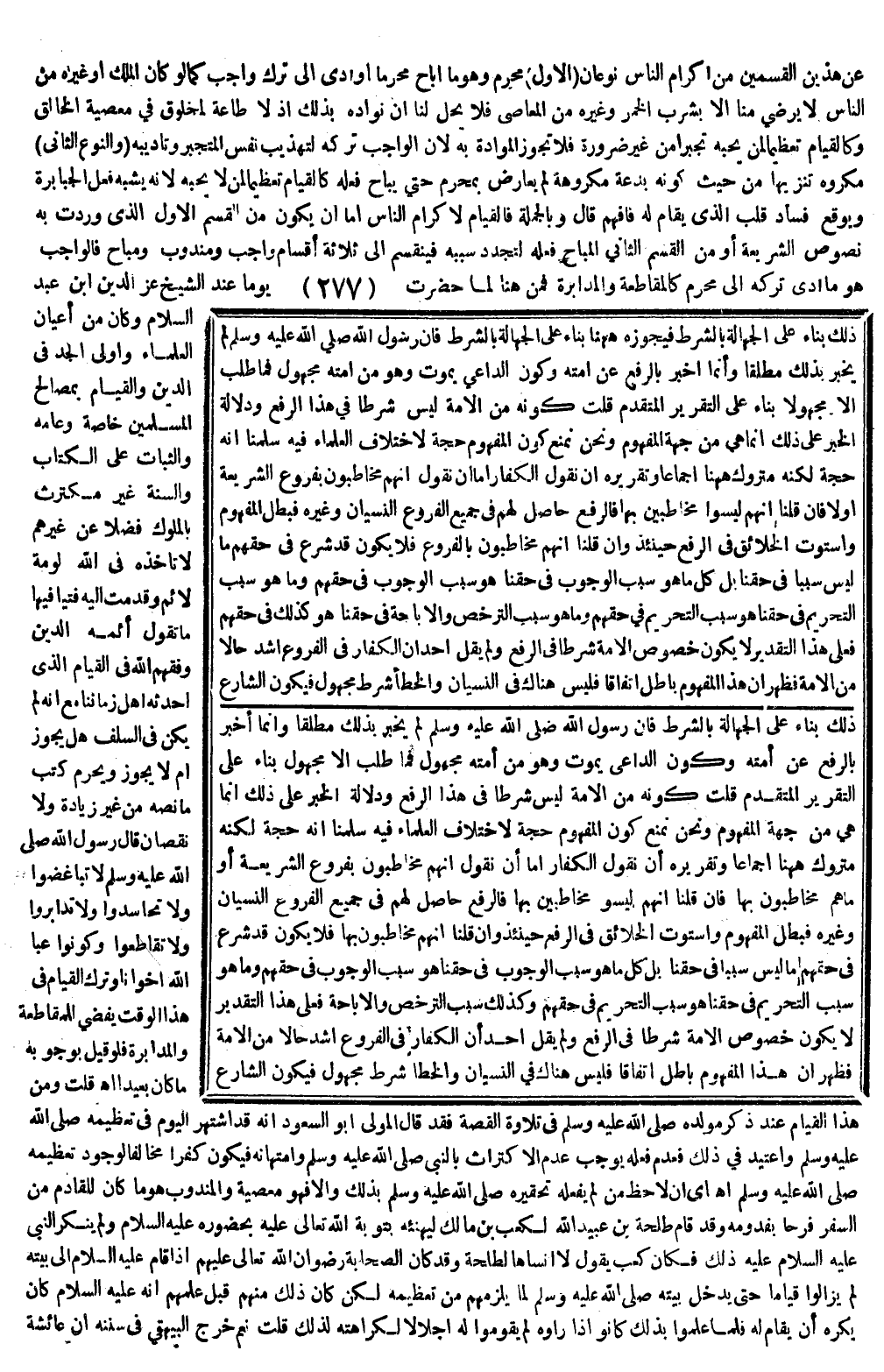 قُلْت: وَمِنْ هَذَا الْقِيَامُ عِنْدَ ذِكْرِ مَوْلِدِهِ - صَلَّى اللَّهُ عَلَيْهِ وَسَلَّمَ - فِي تِلَاوَةِ الْقِصَّةِ فَقَدْ قَالَ الْمَوْلَى أَبُو السُّعُودِ أَنَّهُ قَدْ اُشْتُهِرَ الْيَوْمَ فِي تَعْظِيمِهِ - صَلَّى اللَّهُ عَلَيْهِ وَسَلَّمَ - وَاعْتِيدَ فِي ذَلِكَ فَعَدَمُ فِعْلِهِ يُوجِبُ عَدَمَ الِاكْتِرَاثِ بِالنَّبِيِّ - صَلَّى اللَّهُ عَلَيْهِ وَسَلَّمَ - وَامْتِهَانَهُ فَيَكُونُ كُفْرًا مُخَالِفًا لِوُجُودِ تَعْظِيمِهِ - صَلَّى اللَّهُ عَلَيْهِ وَسَلَّمَ - اهـ.