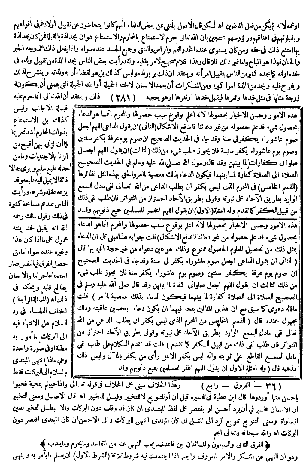 (الْقِسْمُ الْخَامِسُ) فِي الْمُحَرَّمِ الَّذِي لَيْسَ بِكُفْرٍ أَنْ يَطْلُبَ الدَّاعِي مِنْ اللَّهِ تَعَالَى نَفْيَ مَا دَلَّ السَّمْعُ الْوَارِدُ بِطَرِيقِ الْآحَادِ عَلَى ثُبُوتِهِ وَقَوْلِي بِطَرِيقِ الْآحَادِ احْتِرَازٌ مِنْ الْمُتَوَاتِرِ فَإِنَّ طَلَبَ نَفْيِ ذَلِكَ مِنْ قَبِيلِ الْكُفْرِ كَمَا تَقَدَّمَ وَلَهُ أَمْثِلَةٌ (الْأَوَّلُ) أَنْ يَقُولَ اللَّهُمَّ اغْفِرْ لِلْمُسْلِمِينَ جَمِيعَ ذُنُوبِهِمْ، وَقَدْ