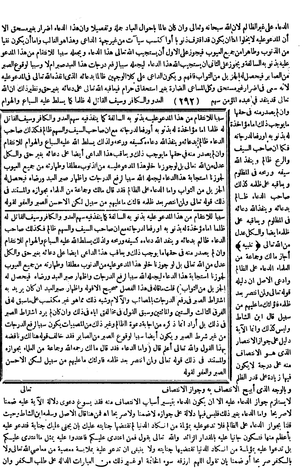ـــــــــــــــــــــــــــــSسَبَبًا لِلِانْتِقَامِ مِنْ هَذَا الْمَدْعُوِّ عَلَيْهِ بِذُنُوبِهِ السَّالِفَةِ كَمَا يَنْفُذُ فِيهِ سَهْمُ الْعَدُوِّ وَالْكَافِرِ وَسَيْفُ الْقَاتِلِ لَهُ ظُلْمًا إمَّا مُؤَاخَذَةً لَهُ بِذُنُوبِهِ أَوْ رَفْعًا لِدَرَجَاتِهِ مَعَ أَنَّ صَاحِبَ السَّيْفِ وَالسَّهْمِ ظَالِمٌ فَكَذَلِكَ صَاحِبُ الدُّعَاءِ ظَالِمٌ بِدُعَائِهِ، وَيُنْفِذُ اللَّهُ دُعَاءَهُ كَسَيْفِهِ وَرُمْحِهِ، وَلِذَلِكَ يُسَلِّطُ اللَّهُ عَلَيْهِ السِّبَاعَ وَالْهَوَامَّ لِلِانْتِقَامِ، وَإِنْ لَمْ يَصْدُرْ مِنْهُ فِي حَقِّهَا مَا يُوجِبُ ذَلِكَ وَيُعَاقِبُ هَذَا الدَّاعِيَ أَيْضًا عَلَى دُعَائِهِ بِغَيْرِ حَقٍّ وَالْكُلُّ عَدْلٌ مِنْ اللَّهِ تَعَالَى بَلْ لَوْ جَوَّزْنَا خُلُوَّ هَذَا الْمَدْعُوِّ عَلَيْهِ مِنْ الذُّنُوبِ مُطْلَقًا وَطَهَارَتَهُ مِنْ جَمِيعِ الْعُيُوبِ لَجَوَّزْنَا اسْتِجَابَةَ هَذَا الدُّعَاءِ لِيَجْعَلَهُ اللَّهُ سَبَبًا لِرَفْعِ الدَّرَجَاتِ وَإِظْهَارِ صَبْرِ الْعَبْدِ وَرِضَاهُ فَيَحْصُلَ لَهُ الْجَزِيلُ مِنْ الثَّوَابِ) .