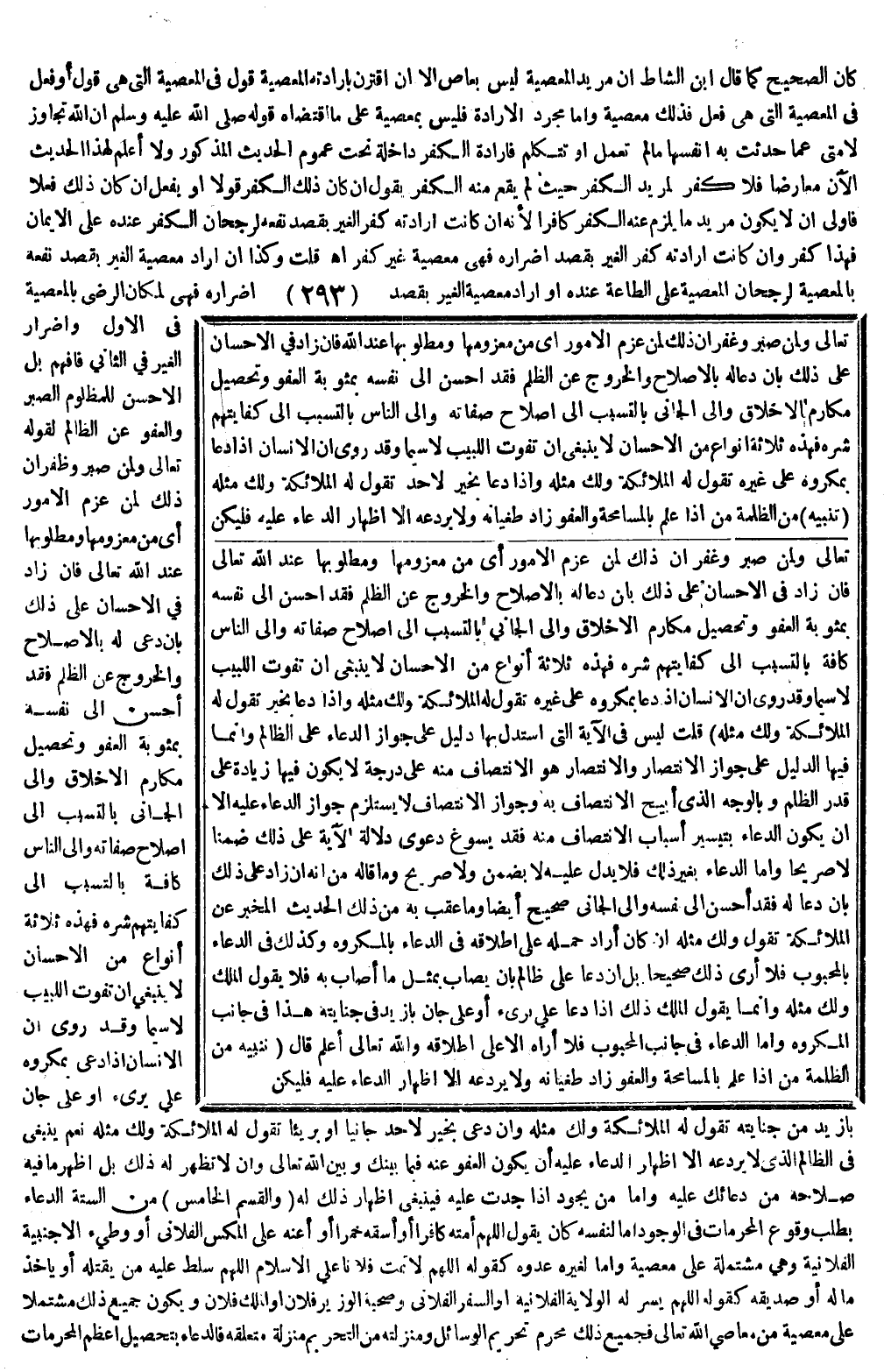 ـــــــــــــــــــــــــــــQكَانَ الصَّحِيحُ - كَمَا قَالَ ابْنُ الشَّاطِّ - أَنَّ مُرِيدَ الْمَعْصِيَةِ لَيْسَ بِعَاصٍ إلَّا إنْ اقْتَرَنَ بِإِرَادَتِهِ الْمَعْصِيَةَ قَوْلٌ فِي الْمَعْصِيَةِ الَّتِي هِيَ قَوْلٌ أَوْ فِعْلٌ فِي الْمَعْصِيَةِ الَّتِي هِيَ فِعْلٌ فَذَلِكَ مَعْصِيَةٌ، وَأَمَّا مُجَرَّدُ الْإِرَادَةِ فَلَيْسَ بِمَعْصِيَةٍ عَلَى مَا اقْتَضَاهُ قَوْلُهُ - صَلَّى اللَّهُ عَلَيْهِ وَسَلَّمَ - «إنَّ اللَّهَ تَجَاوَزَ لِأُمَّتِي عَمَّا حَدَّثَتْ بِهِ أَنْفُسَهَا مَا لَمْ تَعْمَلْ أَوْ تَتَكَلَّمْ» فَإِرَادَةُ الْكُفْرِ دَاخِلَةٌ تَحْتَ عُمُومِ الْحَدِيثِ الْمَذْكُورِ وَلَا أَعْلَمُ لِهَذَا الْحَدِيثِ الْآنَ مُعَارِضًا فَلَا كُفْرَ لِمُرِيدِ الْكُفْرِ حَيْثُ لَمْ يَقَعْ مِنْهُ الْكُفْرُ بِقَوْلٍ إنْ كَانَ ذَلِكَ الْكُفْرُ قَوْلًا، أَوْ بِفِعْلٍ إنْ كَانَ ذَلِكَ فِعْلًا فَأَوْلَى أَنْ لَا يَكُونَ مُرِيدُ مَا يَلْزَمُ عَنْهُ الْكُفْرُ كَافِرًا؛ لِأَنَّهُ إنْ كَانَتْ إرَادَتُهُ كُفْرَ الْغَيْرِ بِقَصْدِ نَفْعِهِ لِرُجْحَانِ الْكُفْرِ عِنْدَهُ عَلَى الْإِيمَانِ فَهَذَا كُفْرٌ، وَإِنْ كَانَتْ إرَادَتُهُ كُفْرَ الْغَيْرِ بِقَصْدِ إضْرَارِهِ فَهِيَ مَعْصِيَةٌ غَيْرُ كُفْرٍ اهـ قُلْت، وَكَذَا إنْ أَرَادَ مَعْصِيَةَ الْغَيْرِ بِقَصْدِ نَفْعِهِ بِالْمَعْصِيَةِ لِرُجْحَانِ الْمَعْصِيَةِ عَلَى الطَّاعَةِ عِنْدَهُ أَوْ أَرَادَ مَعْصِيَةَ الْغَيْرِ بِقَصْدِ إضْرَارِهِ فَهِيَ لِمَكَانِ الرِّضَا بِالْمَعْصِيَةِ فِي الْأَوَّلِ وَإِضْرَارِ الْغَيْرِ فِي الثَّانِي فَافْهَمْ. بَلْ الْأَحْسَنُ لِلْمَظْلُومِ الصَّبْرُ وَالْعَفْوُ عَنْ الظَّالِمِ لِقَوْلِهِ تَعَالَى {وَلَمَنْ صَبَرَ وَغَفَرَ إِنَّ ذَلِكَ لَمِنْ عَزْمِ الأُمُورِ} [الشورى: 43] أَيْ مِنْ مَعْزُومِهَا وَمَطْلُوبِهَا عِنْدَ اللَّهِ تَعَالَى.