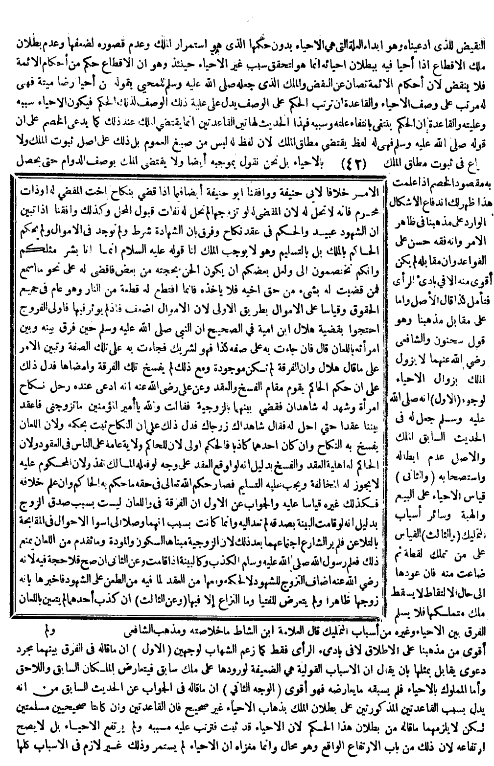 وَأَمَّا الْمَمْلُوكُ بِالْإِحْيَاءِ فَلَمْ يَسْبِقْهُ مَا يُعَارِضُهُ فَهُوَ أَقْوَى (الْوَجْهُ الثَّانِي) أَنَّ مَا قَالَهُ فِي الْجَوَابِ عَنْ الْحَدِيثِ السَّابِقِ مِنْ أَنَّهُ يَدُلُّ بِسَبَبِ الْقَاعِدَتَيْنِ الْمَذْكُورَتَيْنِ عَلَى بُطْلَانِ الْمِلْكِ بِذَهَابِ الْإِحْيَاءِ غَيْرُ صَحِيحٍ فَإِنَّ الْقَاعِدَتَيْنِ، وَإِنْ كَانَتَا صَحِيحَتَيْنِ مُسَلَّمَتَيْنِ لَكِنْ لَا يَلْزَمُهُمَا مَا قَالَهُ مِنْ بُطْلَانِ هَذَا الْحُكْمِ لِأَنَّ الْإِحْيَاءَ قَدْ ثَبَتَ فَتَرَتَّبَ عَلَيْهِ مُسَبِّبُهُ، وَلَمْ يَرْتَفِعْ الْإِحْيَاءُ بَلْ لَا يَصِحُّ ارْتِفَاعُهُ لِأَنَّ ذَلِكَ مِنْ بَابِ الِارْتِفَاعِ الْوَاقِعِ وَهُوَ مُحَالٌ، وَإِنَّمَا مَغْزَاهُ أَنَّ الْإِحْيَاءَ لَمْ يَسْتَمِرَّ، وَذَلِكَ غَيْرُ لَازِمٍ فِي الْأَسْبَابِ كُلِّهَا