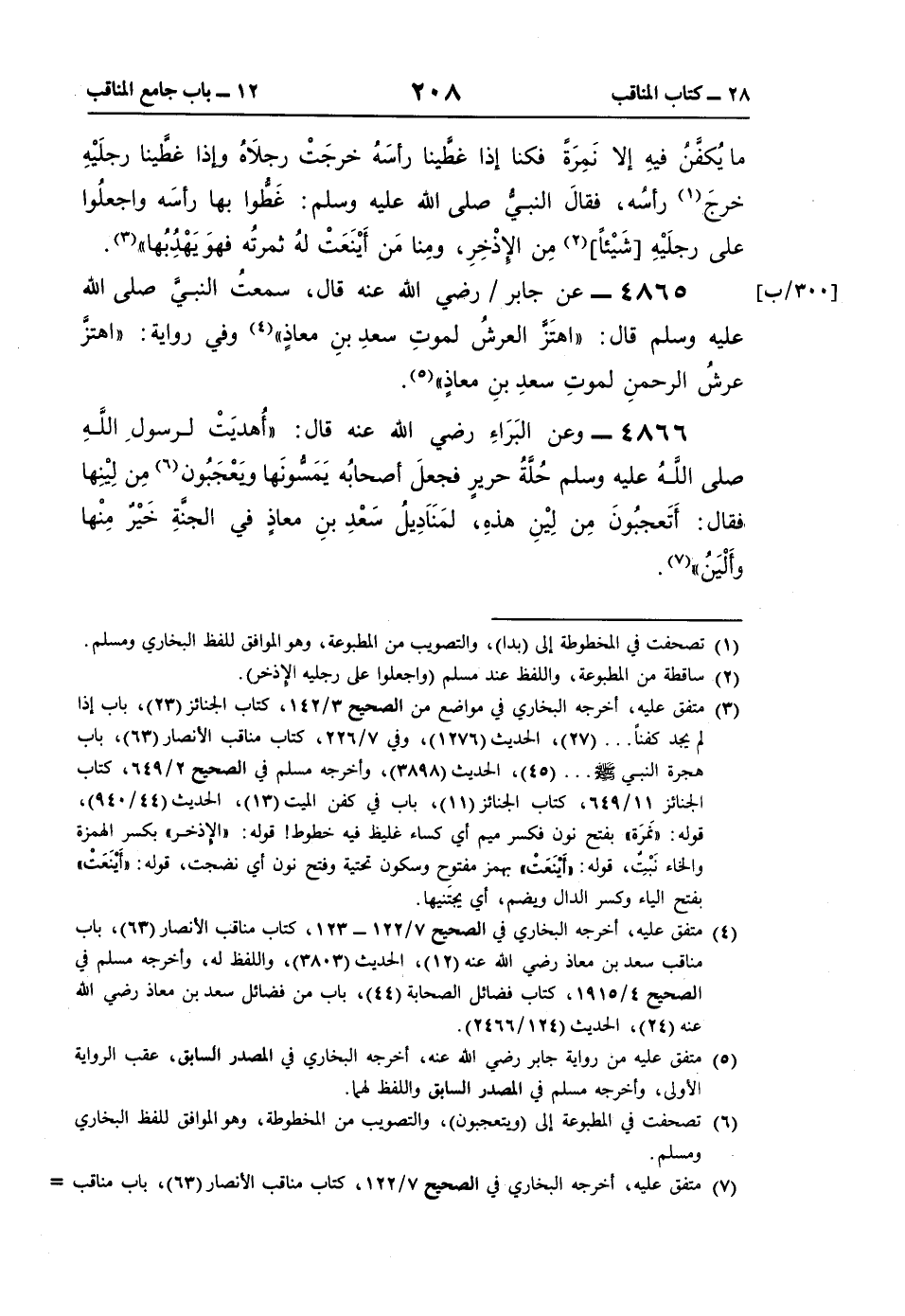 4865 - عن جابر رضي اللَّه عنه قال، سمعتُ النبيَّ صلى اللَّه عليه وسلم قال: "اهتَزَّ العرشُ لموتِ سعدِ بنِ معاذٍ" (¬4) وفي رواية: "اهتزَّ عرشُ الرحمنِ لموتِ سعدِ بنِ معاذٍ" (¬5).