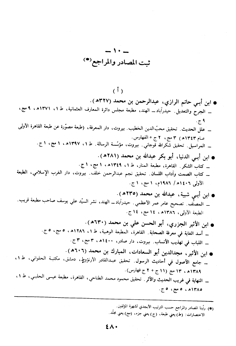الاختصارات: (ط) يعنى طبعة، (ج) يعني جزء، (مج) يعني مجلّد.