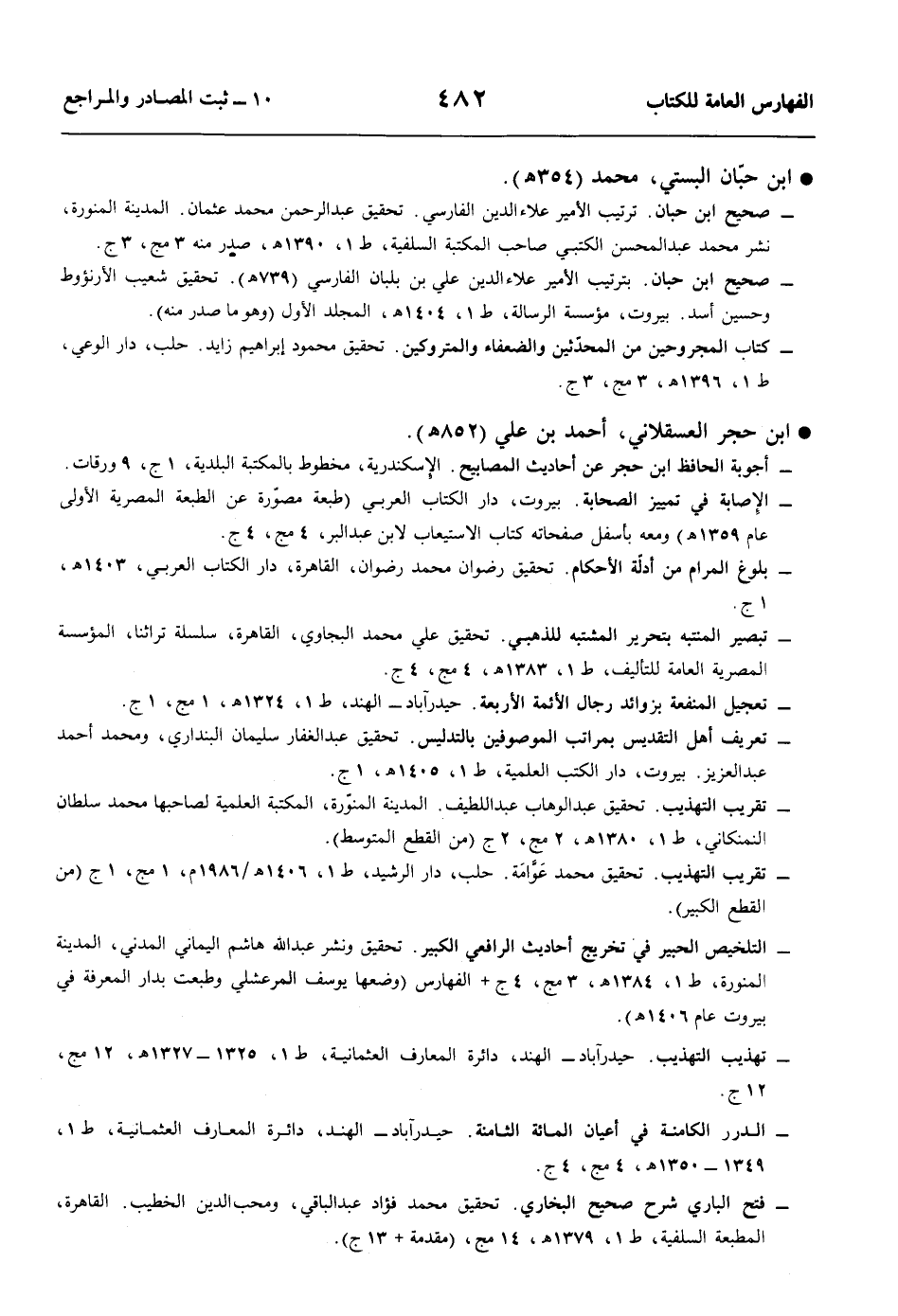 • ابن حجر العسقلاني، أحمد بن علي (852 هـ).