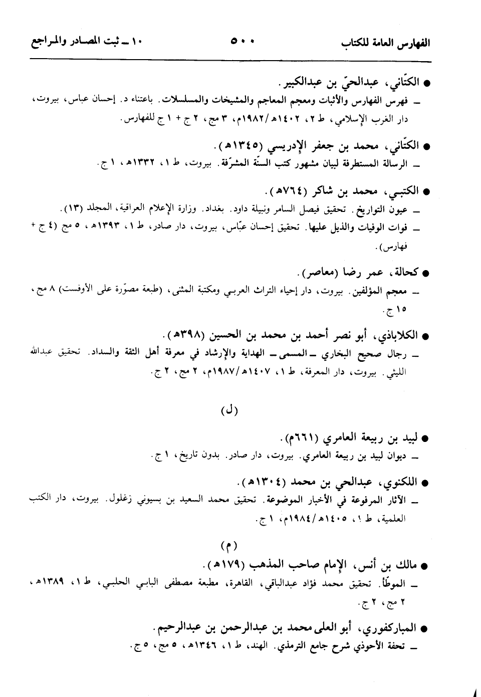 - فهرس الفهارس والأثبات ومعجم المعاجم والمشيخات والمسلسلات. باعتناء د. إحسان عباس، بيروت، دار الغرب الإِسلامي، ط 2، 1402 هـ/ 1982 م، 3 مج، 2 ج + 1 ج للفهارس.