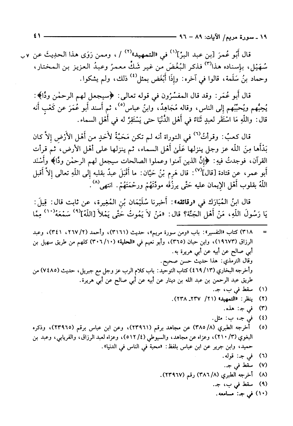 - 318) كتاب «التفسير» : باب «ومن سورة مريم» ، حديث (3161) ، وأحمد (2/ 267، 341) ، وعبد الرزاق (19673) ، وابن حبان (365) ، وأبو نعيم في «الحلية» (10/ 306) كلهم من طريق سهيل بن أبي صالح عن أبيه عن أبي هريرة به.