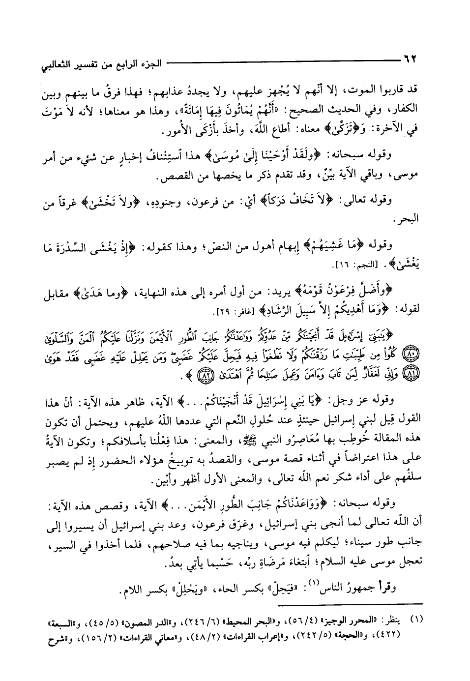 يا بَنِي إِسْرائِيلَ قَدْ أَنْجَيْناكُمْ مِنْ عَدُوِّكُمْ وَواعَدْناكُمْ جانِبَ الطُّورِ الْأَيْمَنَ وَنَزَّلْنا عَلَيْكُمُ الْمَنَّ وَالسَّلْوى (80) كُلُوا مِنْ طَيِّباتِ ما رَزَقْناكُمْ وَلا تَطْغَوْا فِيهِ فَيَحِلَّ عَلَيْكُمْ غَضَبِي وَمَنْ يَحْلِلْ عَلَيْهِ غَضَبِي فَقَدْ هَوى (81) وَإِنِّي لَغَفَّارٌ لِمَنْ تابَ وَآمَنَ وَعَمِلَ صالِحاً ثُمَّ اهْتَدى (82)