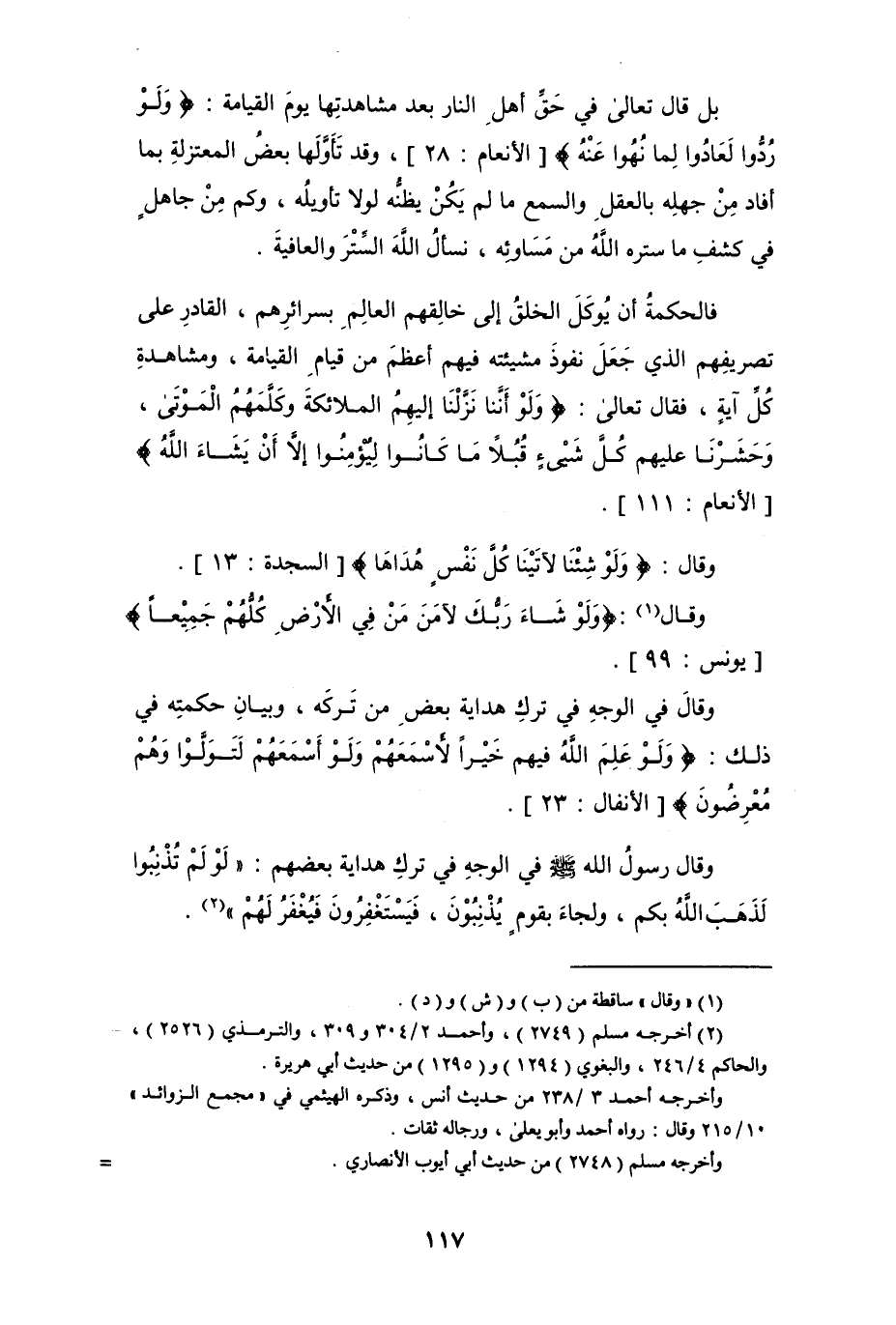 وقال في الوجه في ترك هداية بعض من تركه، وبيان حكمته في ذلك: {وَلَوْ عَلِمَ اللَّهُ فِيهِمْ خَيْرًا لَأَسْمَعَهُمْ وَلَوْ أَسْمَعَهُمْ لَتَوَلَّوْا وَهُمْ مُعْرِضُونَ} [الأنفال: 23].