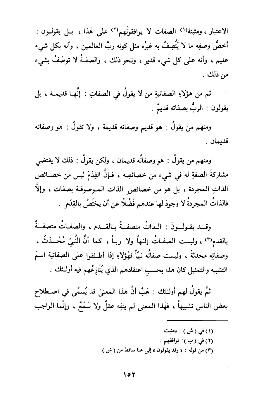 وقد يقولون: الذاتُ متصفةٌ بالقدم، والصفاتُ متصفةٌ بالقدم (¬3)، وليست الصفات إلهاً ولا رباً، كما أنَّ النبي مُحدَثٌ، وصفاتِه محدثةٌ، وليست صفاتُه نبياً فهؤلاء إذا أطلقوا على الصفاتية اسم التشبيه والتمثيل كان هذا بحسب اعتقادهم الذي يُنَازِعُهم فيه أولئك.