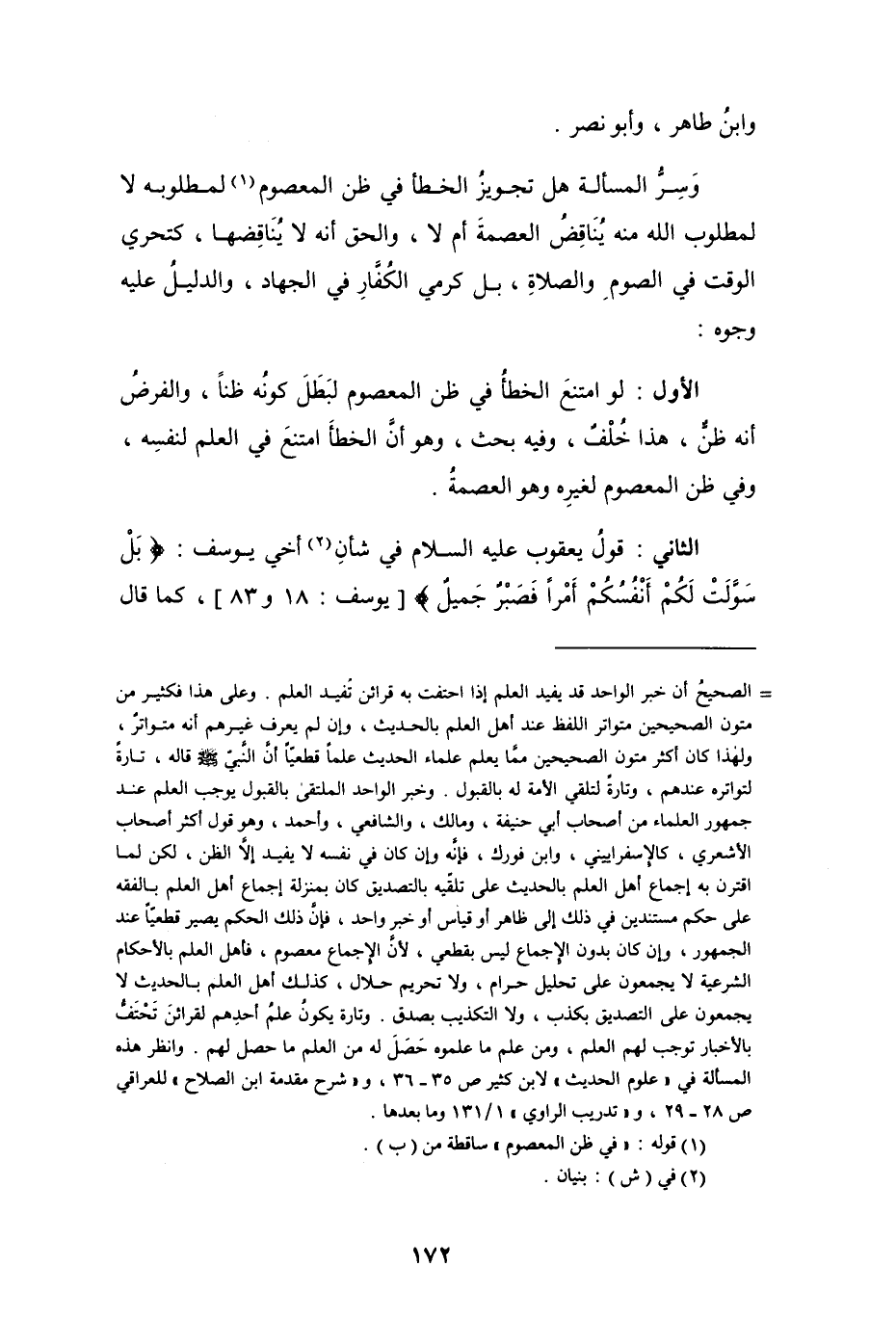 (¬1) قوله: " في ظن المعصوم " ساقطة من (ب).