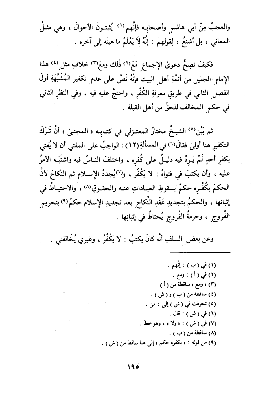 فكيف تصحُّ دعوى الإجماع مع (¬2) ذلك ومن (¬3) خلافِ مثلِ (¬4) هذا الإمام الجليل من أئمَّة أهل البيت فإنه نصَّ على عدم تكفير المُشَبَّهة أول الفصل الثاني في طريق معرفة الكفر، واحتج عليه فيه، وفي النظر الثاني في حكم المخالف للحق من أهل القبلة.