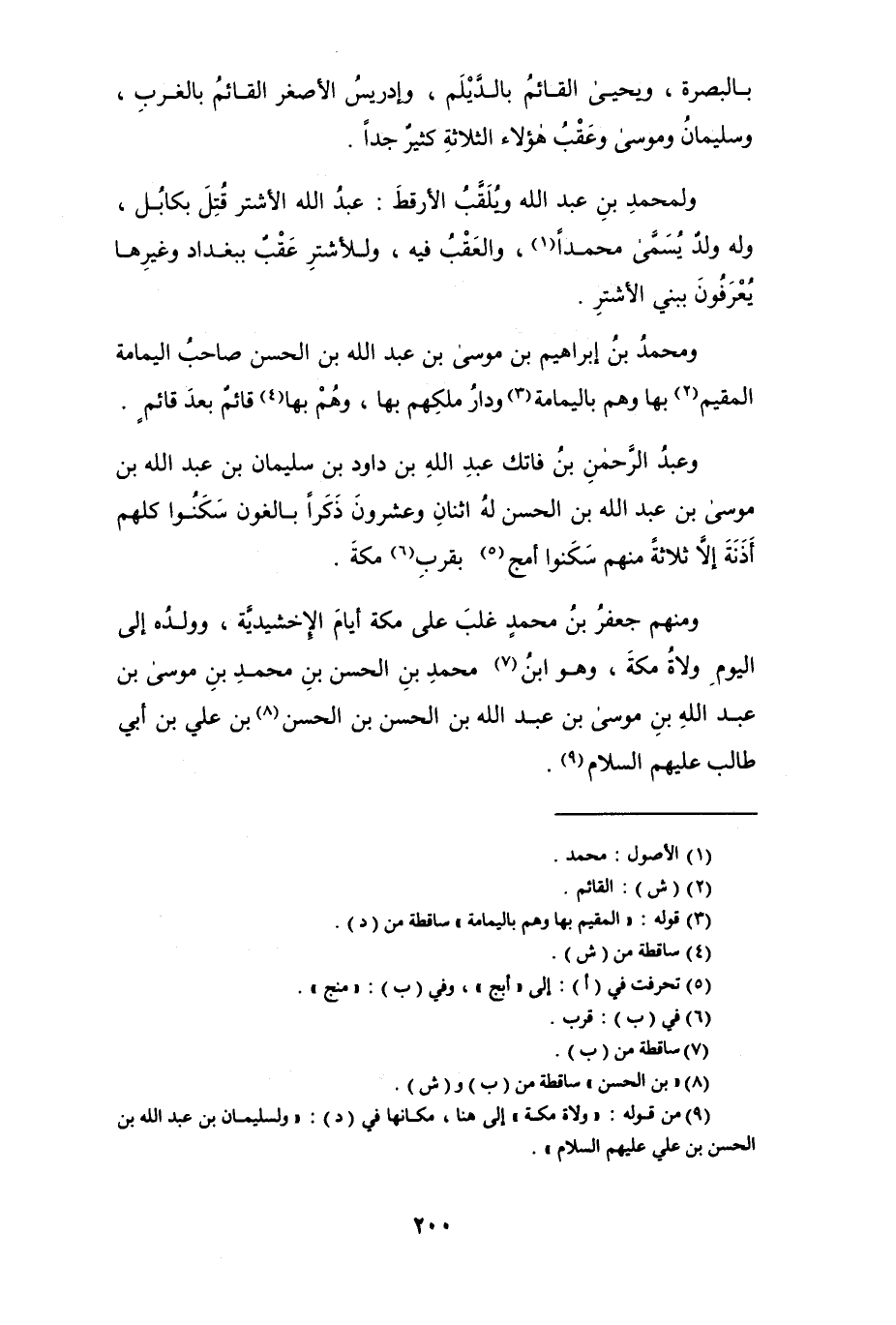 (¬9) من قوله: " ولاة مكة " إلى هنا، مكانها في (د): " ولسليمان بن عبد الله بن الحسن بن علي عليهم السلام ".