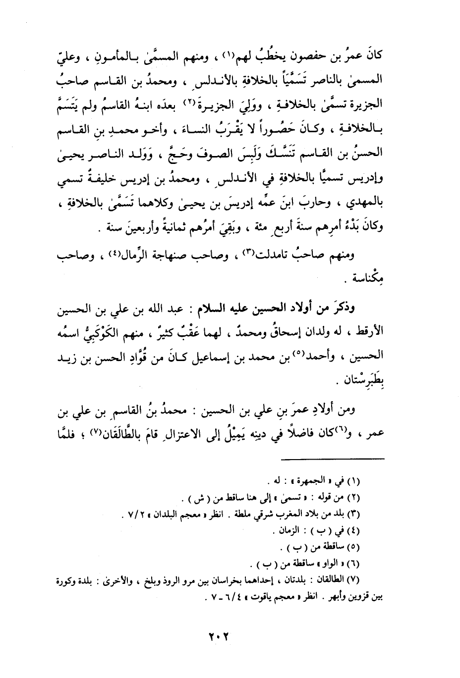 ومن أولاد عمر بن علي بن الحسين: محمد بن القاسم بن علي بن عمر، و (¬6) كان فاضلاً في دينه يميلُ إلى الاعتزال قام بالطَّالَقَان (¬7)؛ فلما