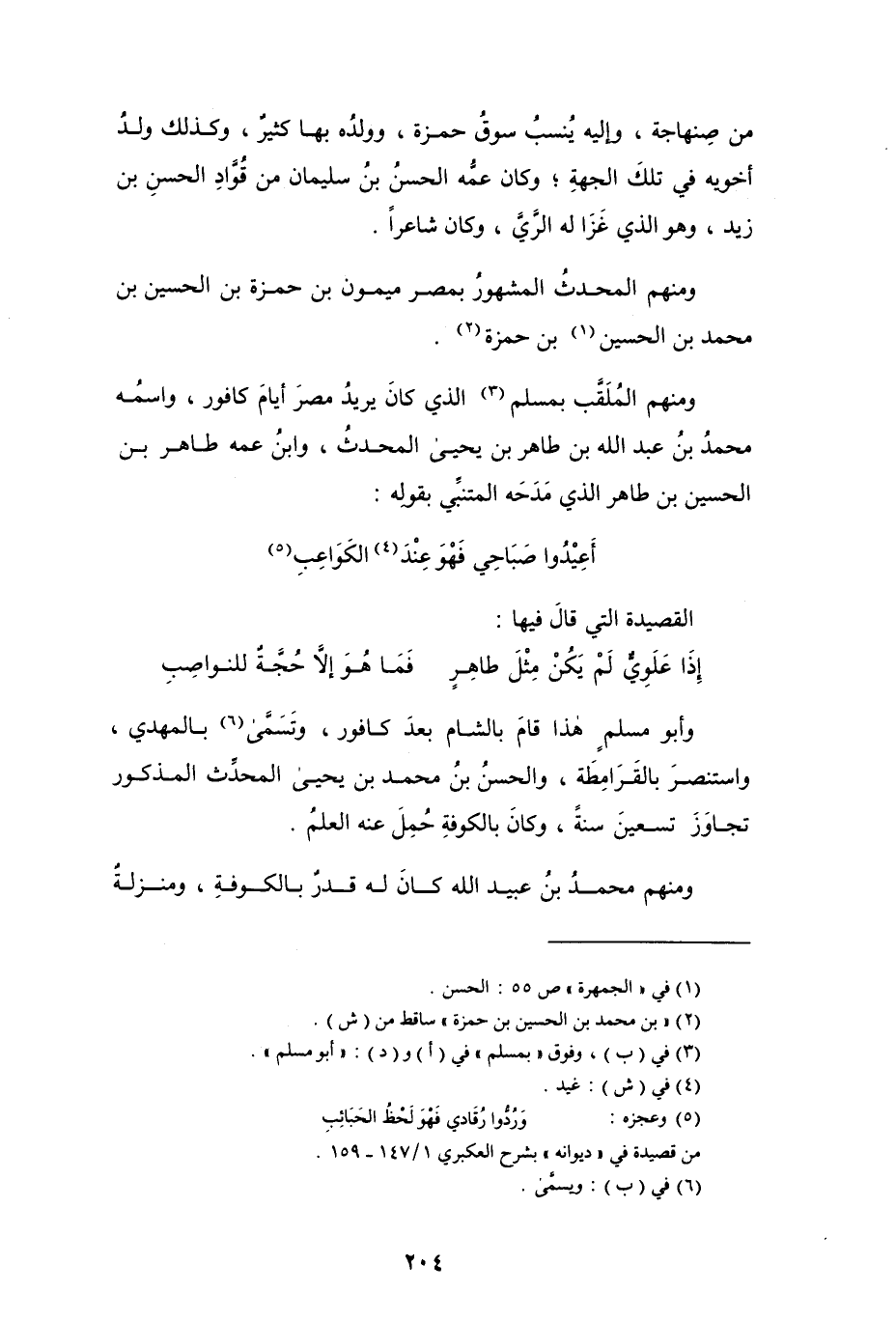 ومنهم الملقب بمسلم (¬3) الذي كان يريدُ مصر أيام كافور، واسمه محمد بن عبد الله بن طاهر بن يحيى المحدث، وابن عمه طاهر بن الحسين بن طاهر الذي مدحه المتنبي بقوله: