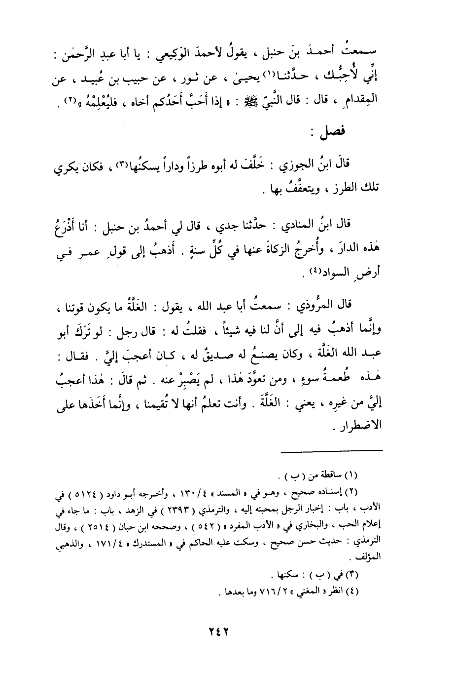 سمعت أحمد بن حنبل، يقول لأحمد الوكيعي: يا أبا عبد الرحمن: إئي لأحبك، حدثنا (¬1) يحيى، عن ثور، عن حبيب بن عبيد، عن المقدام، قال: قال النبي - صلى الله عليه وسلم -: " إذا أحب أحدُكم أخاه، فليُعْلِمْهُ " (¬2).