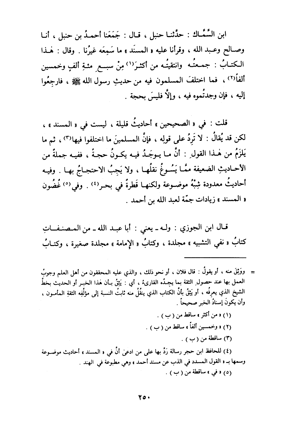 (¬4) للحافظ ابن حجر رسالة ردَّ بها على من ادعى أنَّ في " المسند " أحاديث موضوعة وسمها بـ " القول المسدد في الذب عن مسند أحمد " وهي مطبوعة في الهند.
