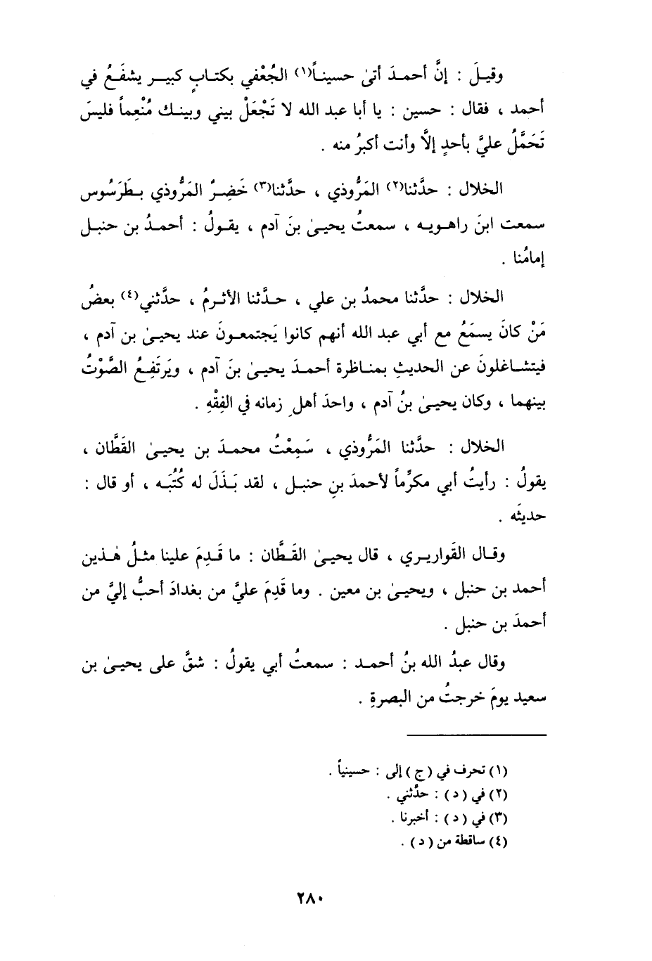 الخلال: حدثنا (¬2) المروذي، حدثنا (¬3) خَضِرٌ المروذي بطرسوس سمعت ابن راهويه، سمعت يحيى بن آدم، يقول: أحمد بن حنبل إمامنا.