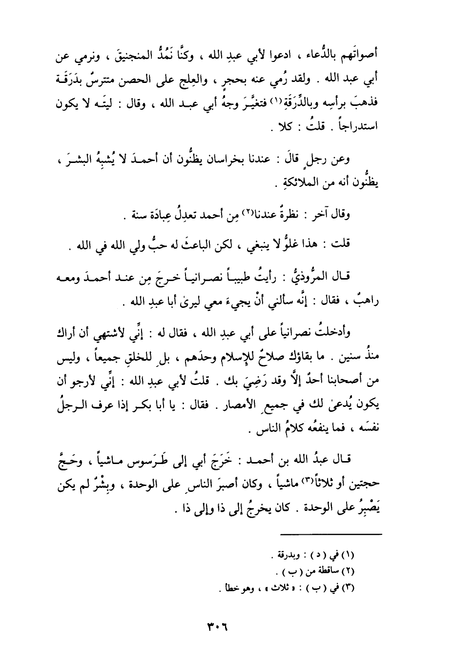 وعن رجلٍ قال: عندنا بخراسان يظنُّون أن أحمد لا يُشبِهُ البشر، يظنون أنه من الملائكة.