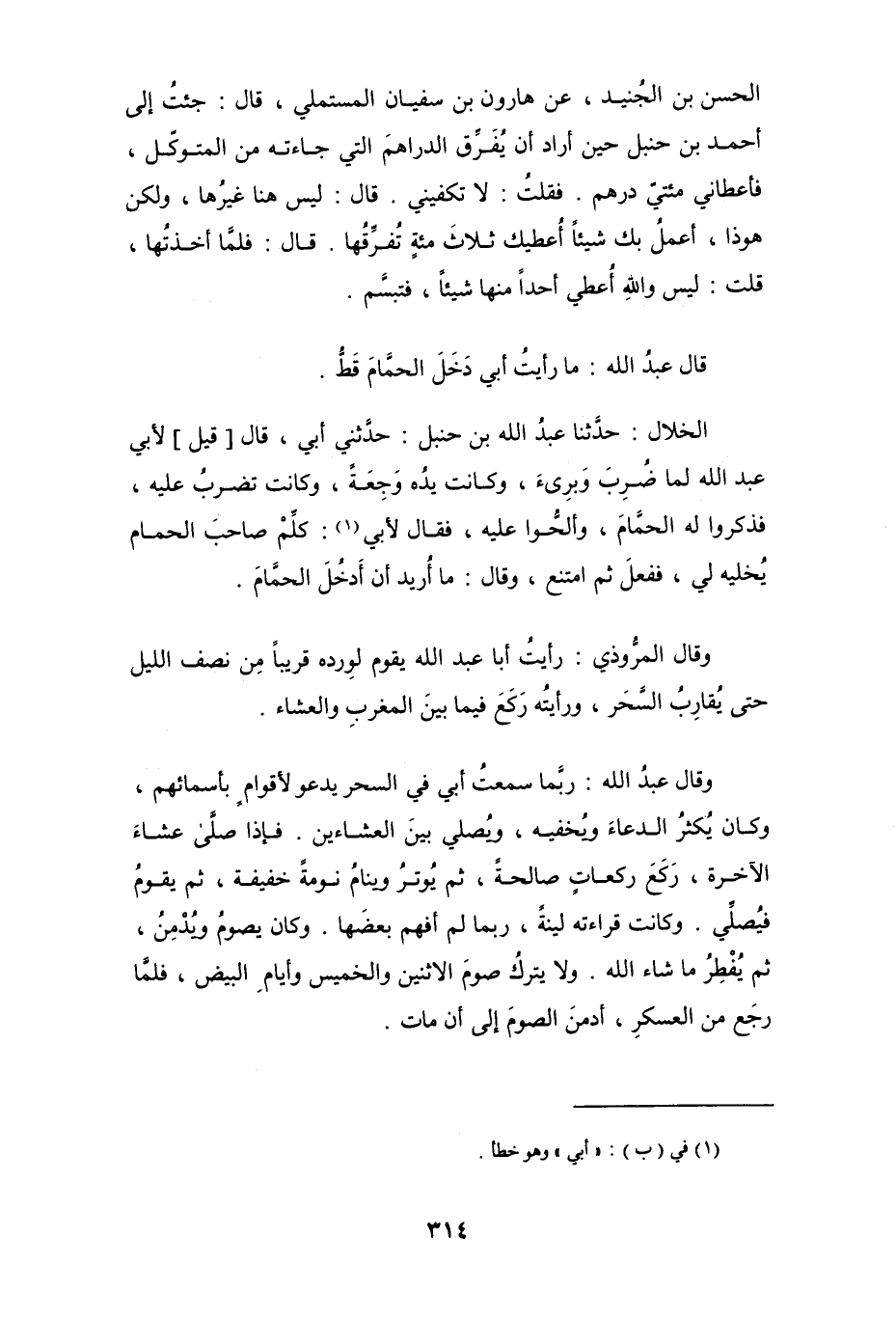 قال عبد الله: ما رأيت أبي دخل الحمَّام قَطُّ.