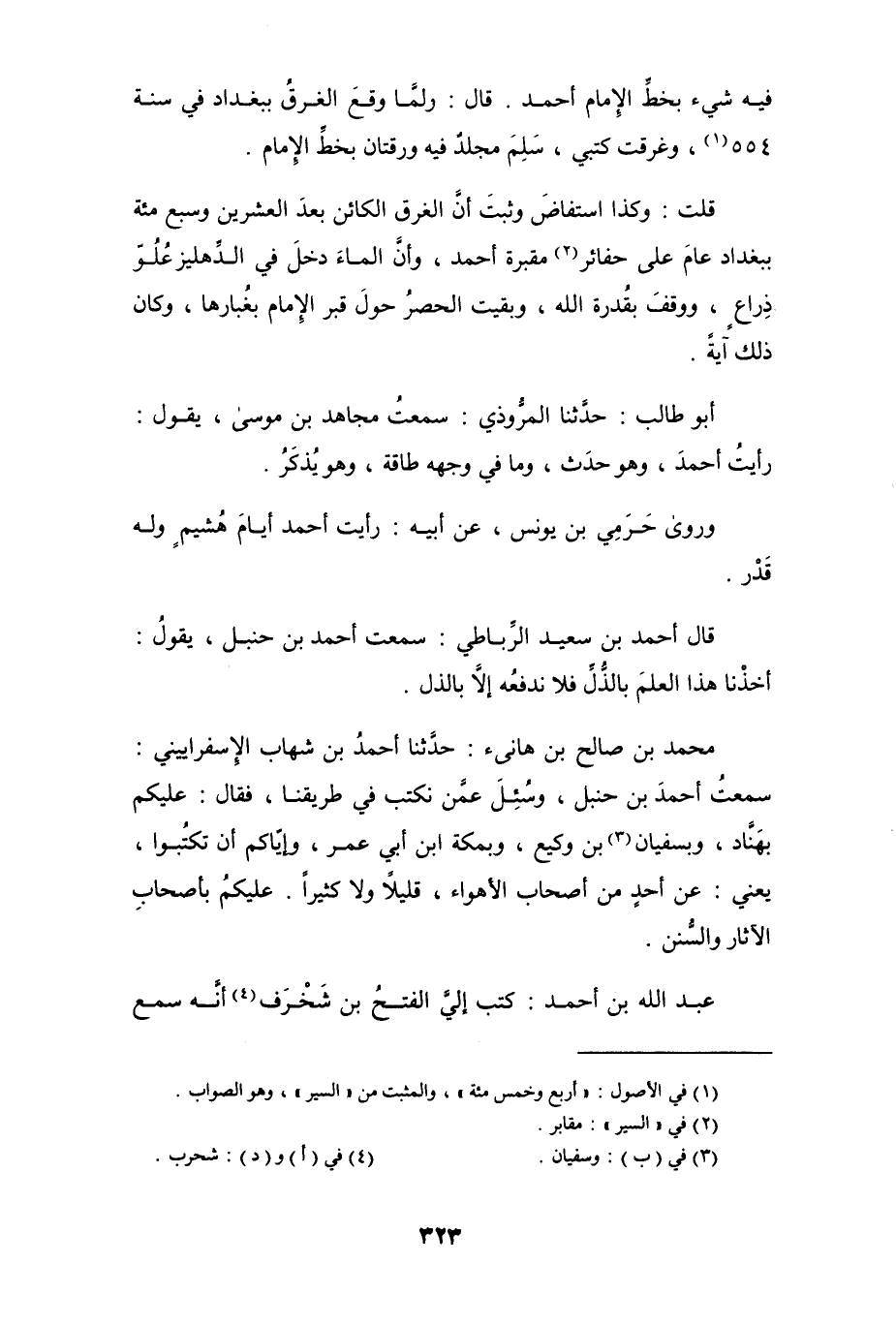 فيه شيء بخطِّ الإمام أحمد. قال: ولمَّا وقعَ الغرق ببغداد في سنة 554 (¬1)، وغرقت كتبي، سَلِمَ مجلدٌ فيه ورقتان بخط الإمام.