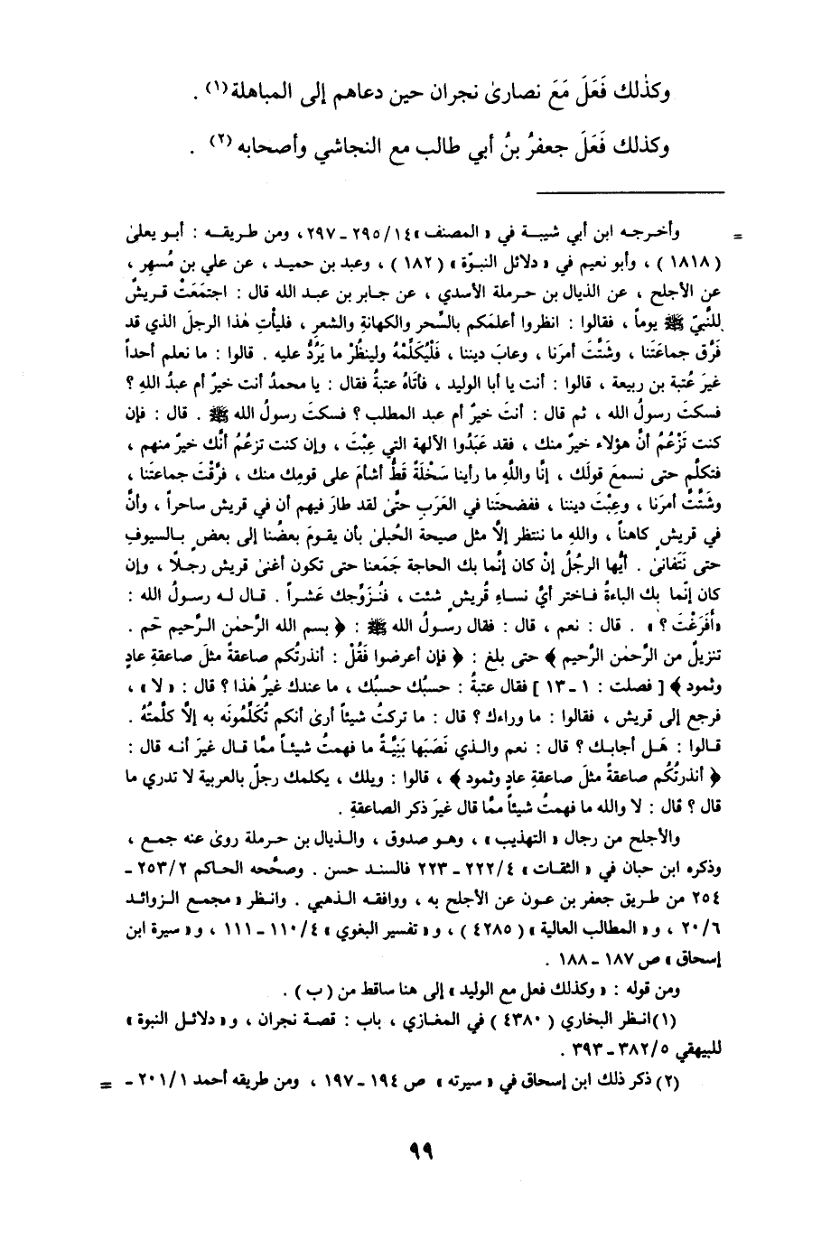 (¬1) انظر البخاري (4380) في المغازي، باب: قصة نجران، و" دلائل النبوة " للبيهقي 5/ 382 - 393.