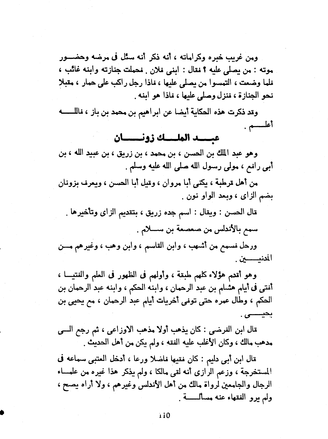 هو عبد الملك بن الحسن، بن محمد بن يونس، بن عبيد الله بن أبي رافع. مولى رسول الله صلى الله عليه وسلم. من أهل قرطبة. يكنى أبا مروان. وقيل أبا الحسن. ويعرف بزونان. بضم الزاي بعد الواو نون. قال ابن الخيري: ويقال في اسم جده زريق. بتقديم الراق وتأخيرها سمع من صعصعة بن سلام، ورحل فسمع من أشهب وابن القاسم. وابن وهب وغيرهم من المدنيين. وهو أقدم هؤلاء كلهم طبقة. وأولهم في الظهور في العلم والفتيا. أفتى في أيام هشام بن عبد الرحمن مع يحيى بن يحيى، قال ابن الفرضي: كان يذهب أولاً مذهب الأوزاعي، ثم رجع الى مذهب مالك. وكان الأغلب عليه الفقه. ولم يكن من أهل الحديث. قال ابن أبي دليم: كان فقيهاً فاضلاً، ورعاً. أدخل العتبي سماعه في المستخرجة. وزعم الرازي أنه لقي مالكاً. ولم يذكر هذا غيره، من أهل علم الحديث الرحال الجامعين لرواية مالك من أهل الأندلس وغيرهم. ولا أراه يصح. ولم يرو الفقهاء عنه مسألة واحدة.