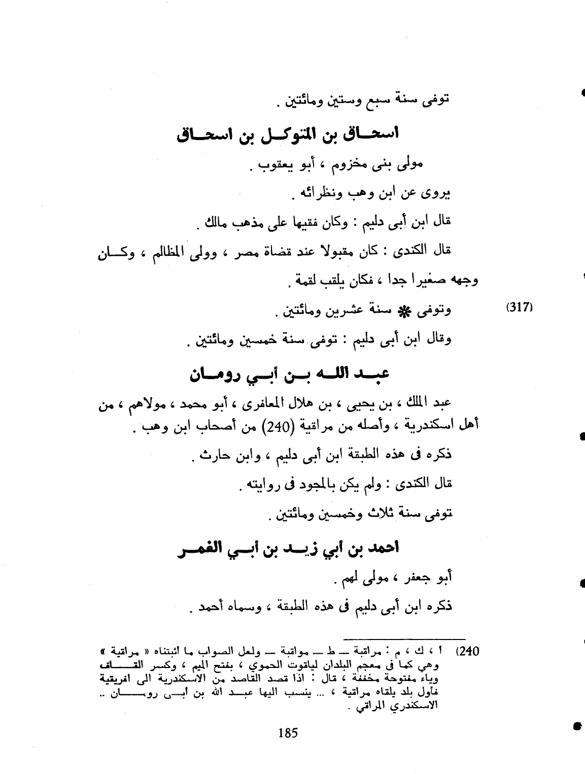 أبو يعقوب. يروي عن ابن وهب ونظرائه. قال ابن أبي دليم: وكان فقيهاً على مذهب مالك. قال الكندي: كان مقبولاً عند قضاة مصر، وولي المظالم. وكان وجهه صغيراً جداً. فكان يلقب لقمة. وتوفي سنة عشرين ومائتين. وقال ابن أبي دليم: توفي سنة خمسين ومائتين.