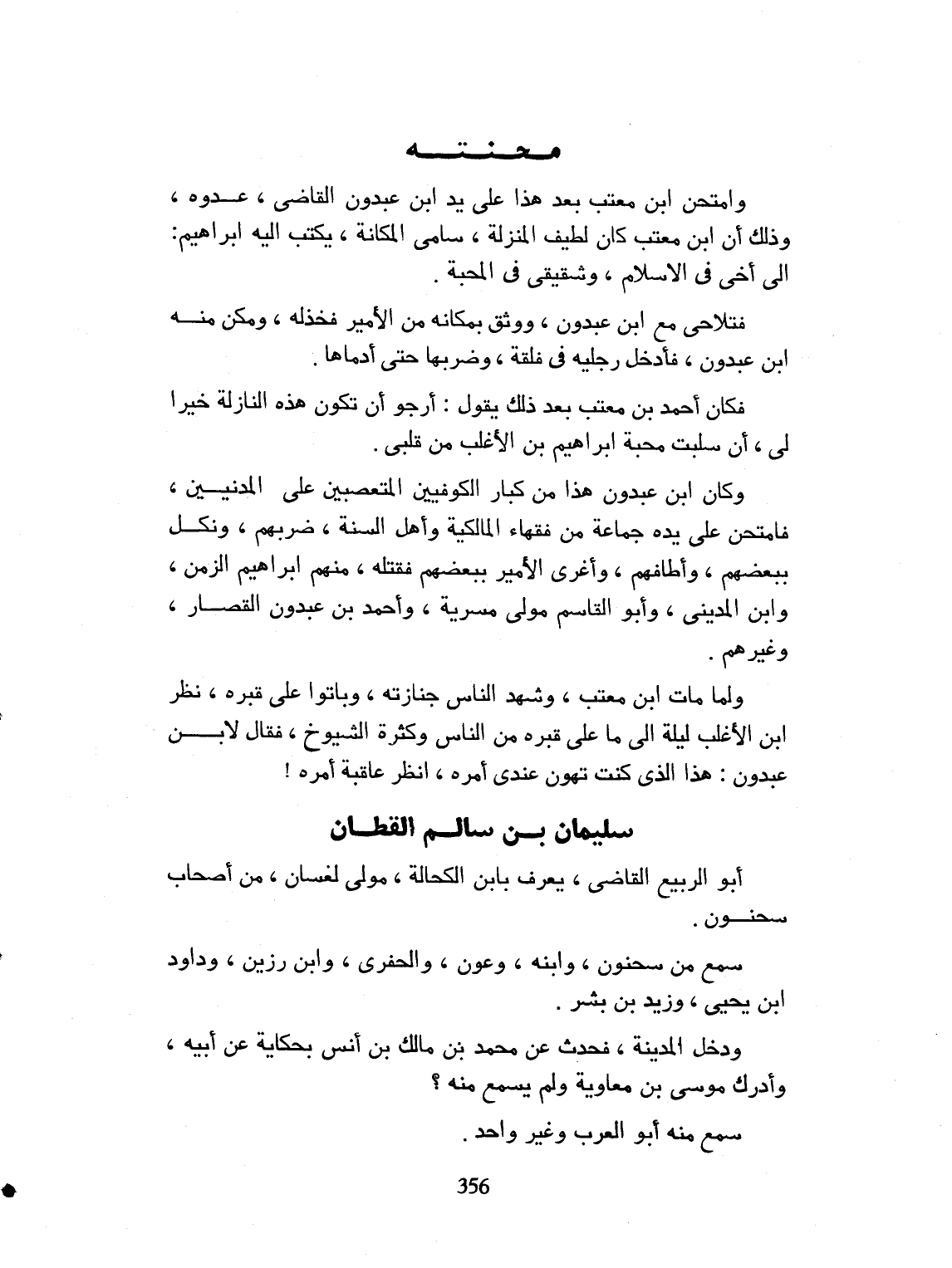 امتحن ابن معتب بعد هذا، على يد القاضي ابن عبدون، عدوه. وذلك أن ابن معتب كان لطيف المنزلة، سامي المكانة، يكتب إليه ابراهيم الى أخي في الإسلام، وشقيقي في المحبة. فتلاحى مع ابن عبدون، ووثق بمكانته من الأمير. فخذله ومكر به ابن عبدون. فأدخل رجليه في فلقه وضربهما حتى أدماهما. فكان أحمد بعد ذلك يقول: أرجو أن تكون هذه النازلة خيراً لي، إذ سلبت محبة ابراهيم بن الأغلب من قلبي. وكان ابن عبدون هذا، من كبار الكوفيين المتعصبين على المؤمنين. فامتحن على يديه جماعة من فقهاء المالكية، وأهل السنة. ضربهم ونكل ببعضهم، وأطلقهم، وأغرى الأمير ببعضهم. فقتل منهم: ابراهيم بن الدمني، وأبو القاسم مولى مهرية، وأحمد بن عبدو العطار، وغيرهم. ولما مات ابن معتب وشهد الناس جنازته، وباتوا على قبره، نظر ابن الأغلب ليلة الى من على قبره من الناس، وكثرة الشيوخ، وقال لابن عبدون: هذا الذي كنت تهون أمره عندي. أنظر ما عاقبه أمره.