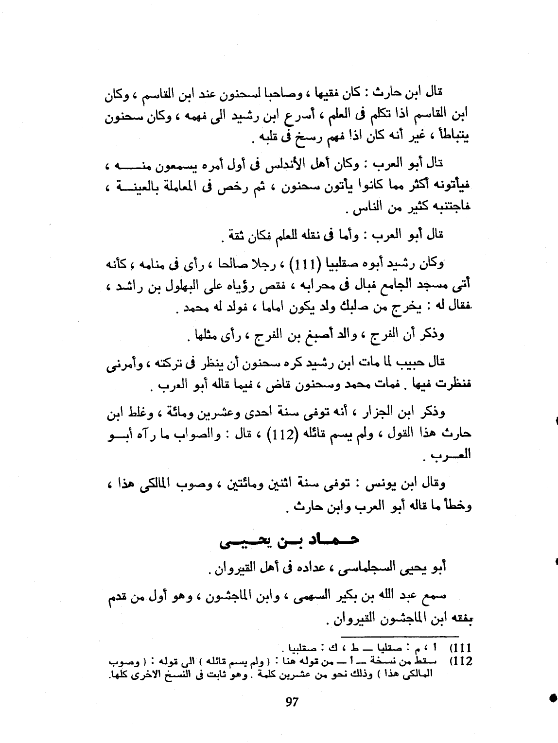 عداده في أهل القيروان. سمع عبد الله بن بكر السهمي وابن الماجشون. وهو أول من قدم بفقه ابن الماجشون القيروان.