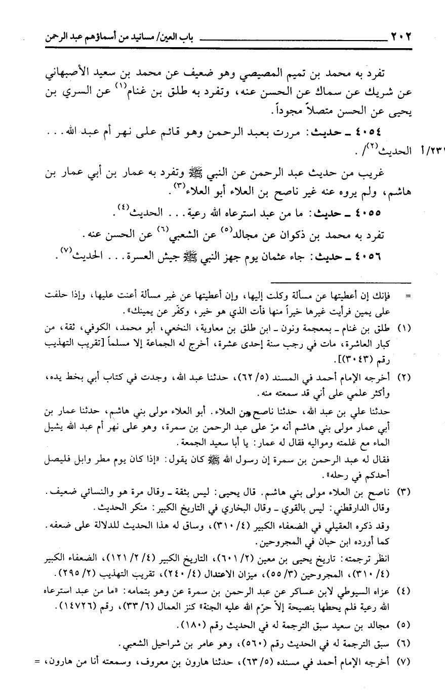 4054 - حَدِيث: مَرَرْت بِعَبْد الرَّحْمَن وَهُوَ قَائِم على نهر أم عبد الله ... 231 / أالحديث /.