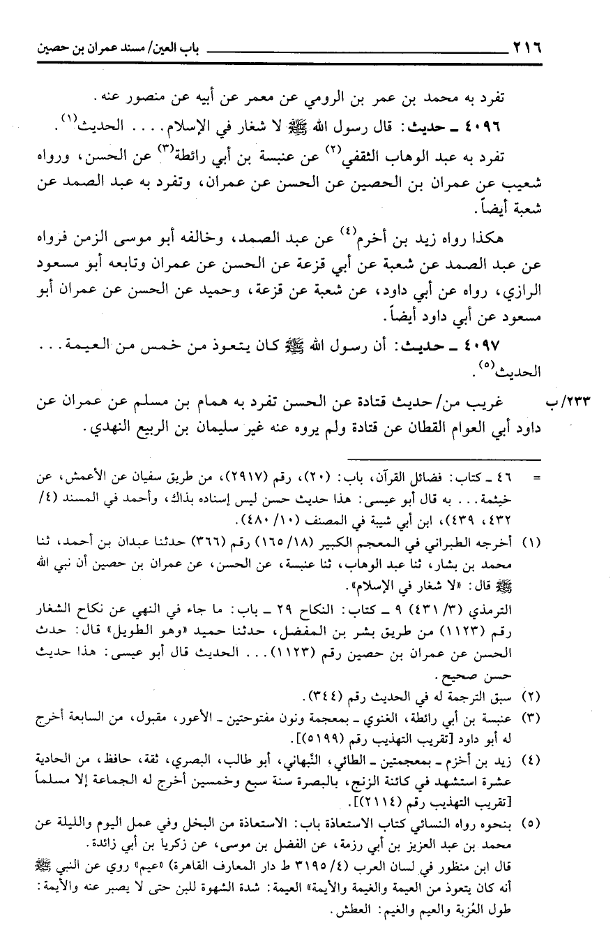 4097 - حَدِيث: أَن رَسُول الله كَانَ يتَعَوَّذ من خمس من العيمة ... الحَدِيث. 233 / ب
